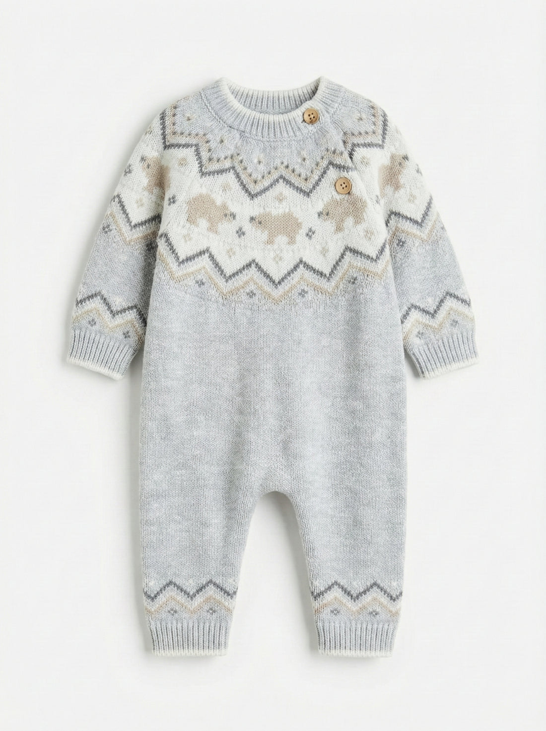 Nordic Knit Baby Romper| Soft Grey & Fair Isle