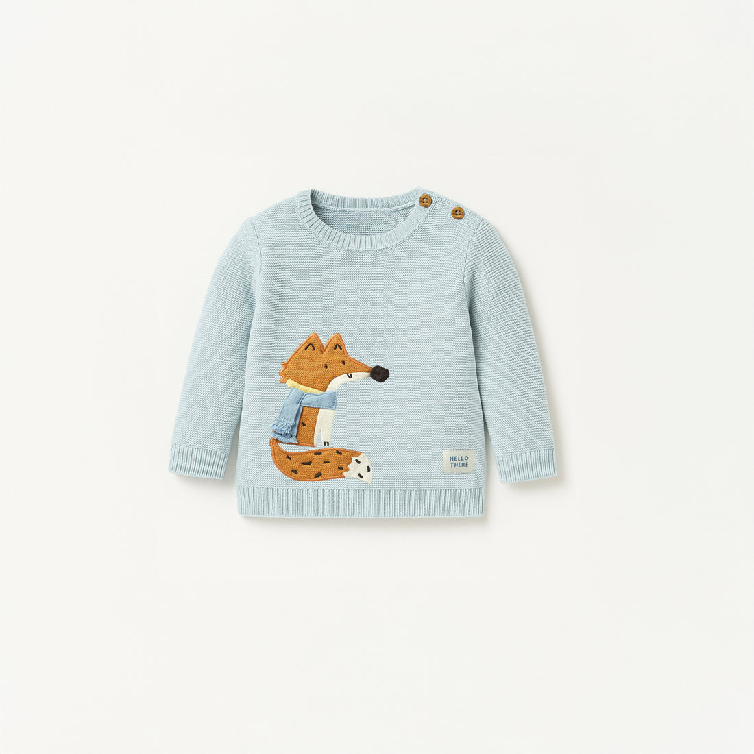 Baby Blue Fox Embroidered Knit Sweater