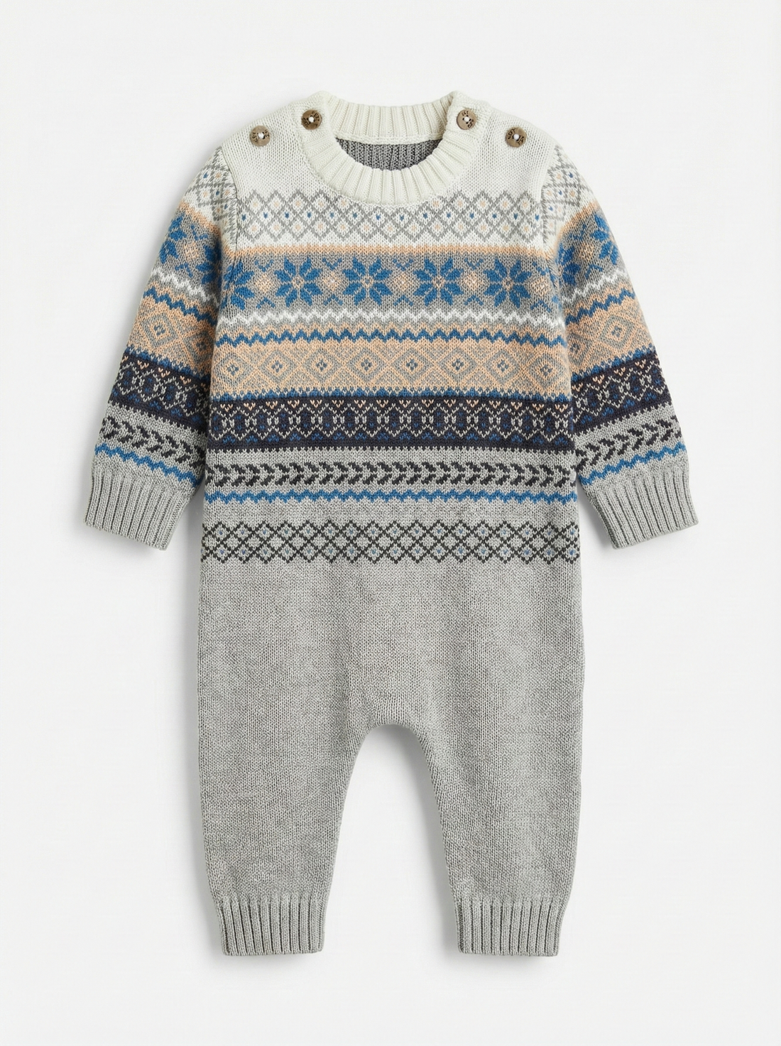 Nordic Knit Baby Romper| Soft Grey & Fair Isle