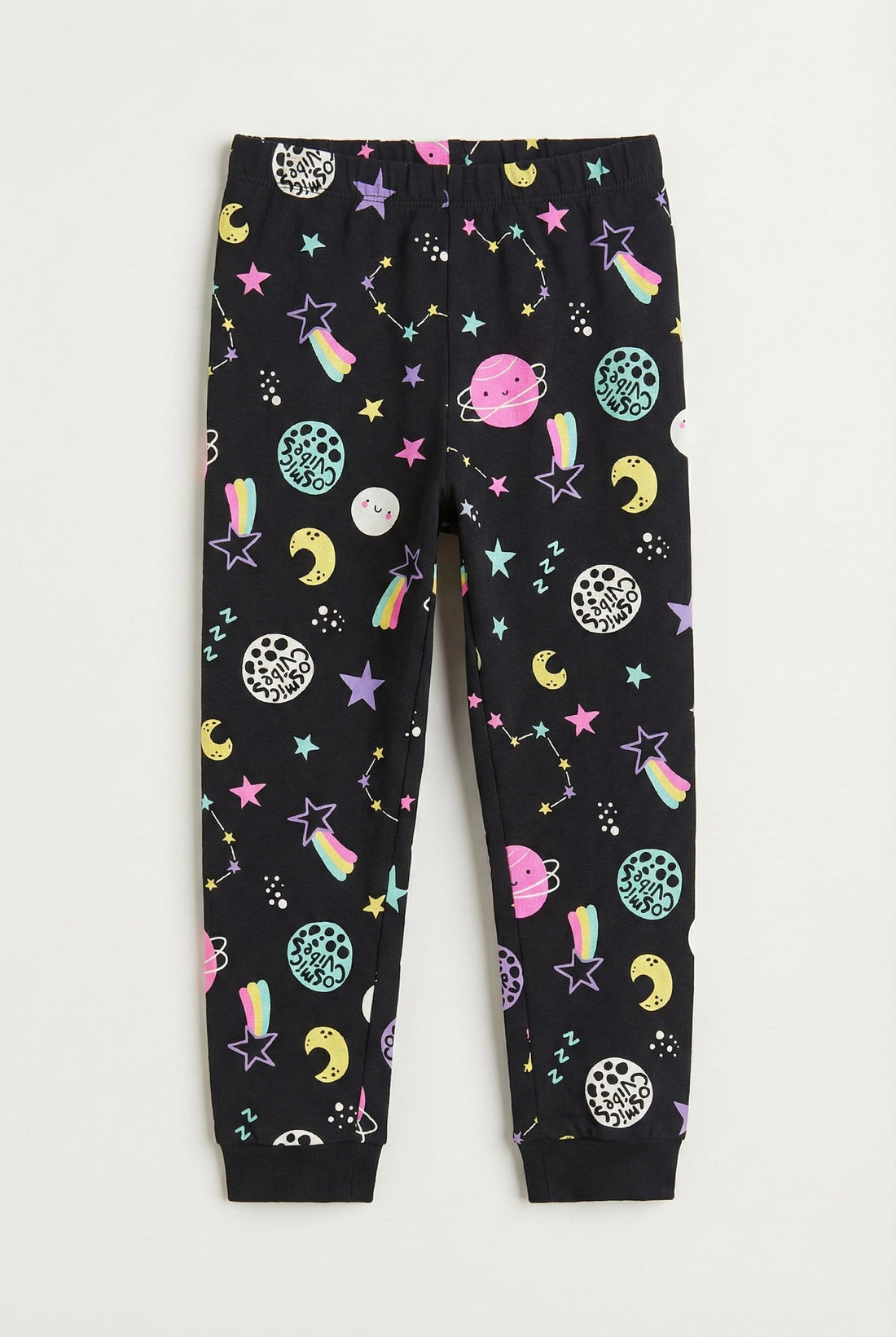 Girl's Stretchable Cotton Fabric Leggings | Black, Cosmic Vibe