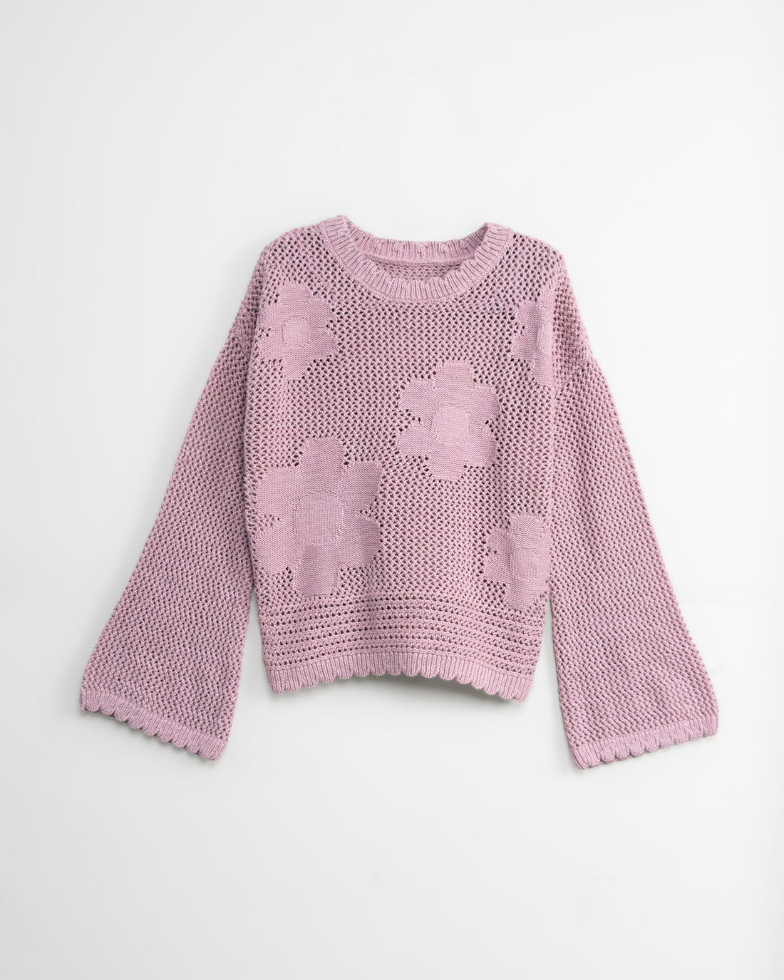 Girl's Open Knit Floral Bell Sleeve Drop Shoulder Jumper