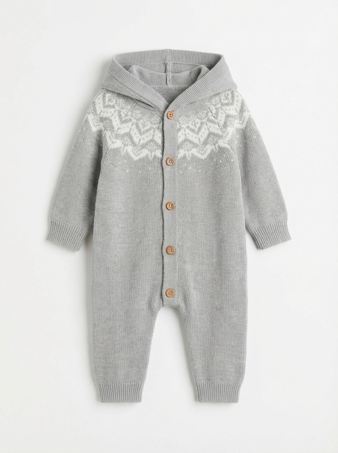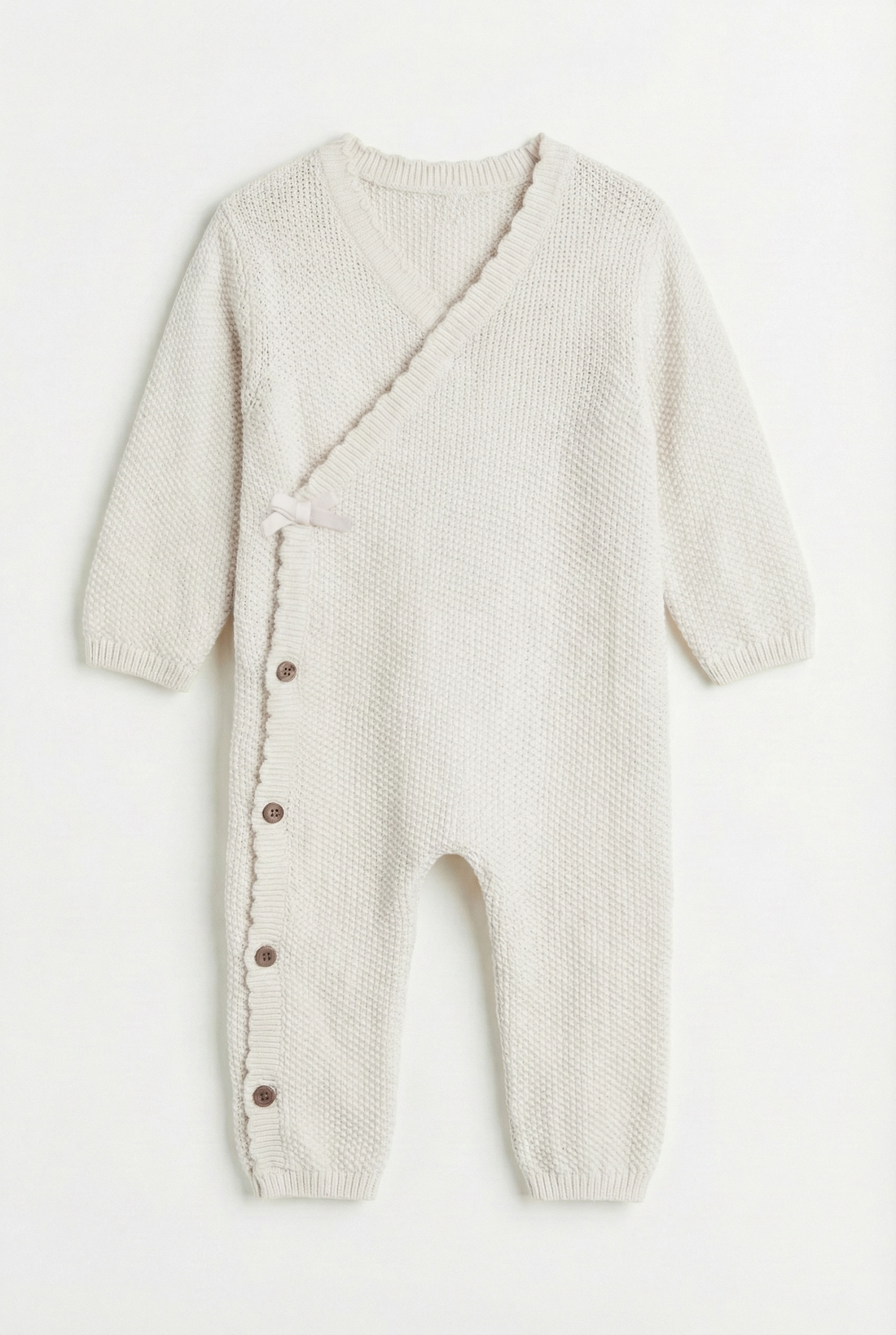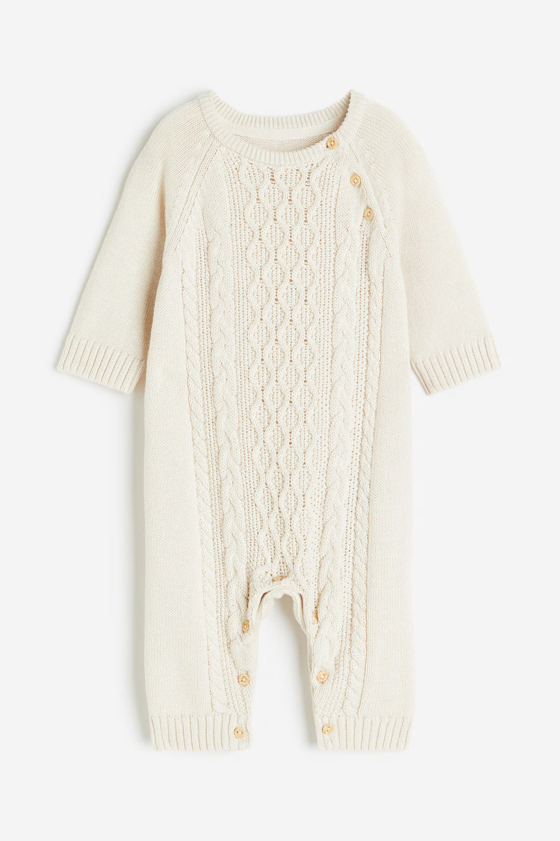 Knit Cotton Hooded Romper Suit | Soft Beige
