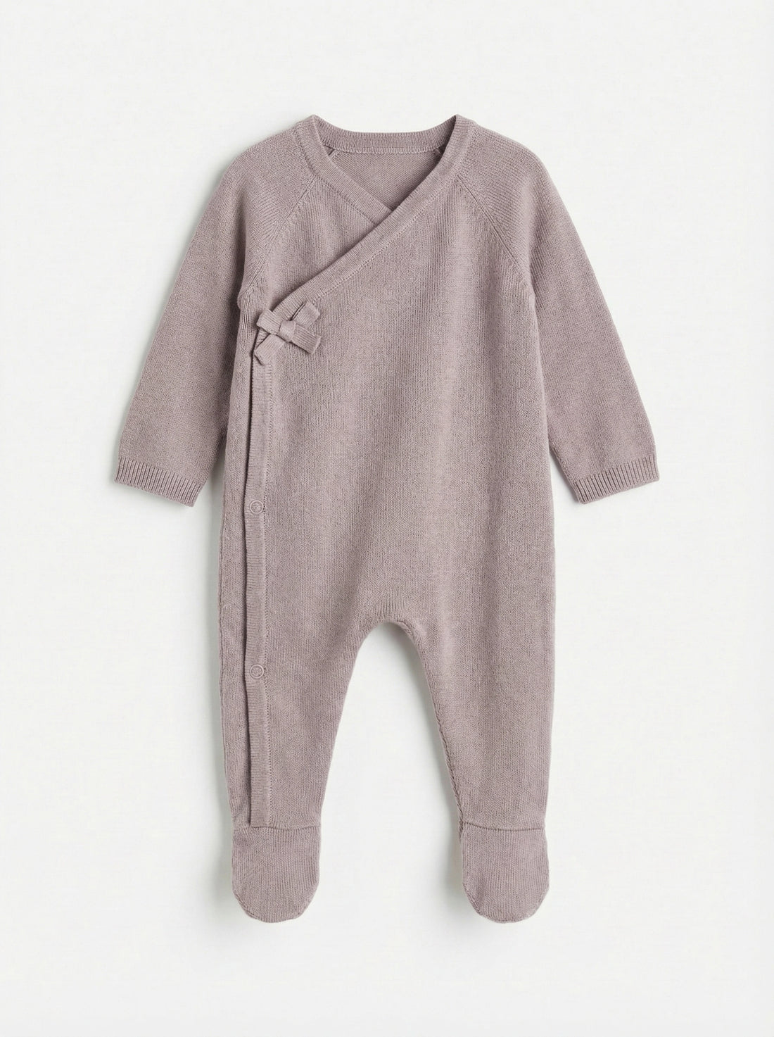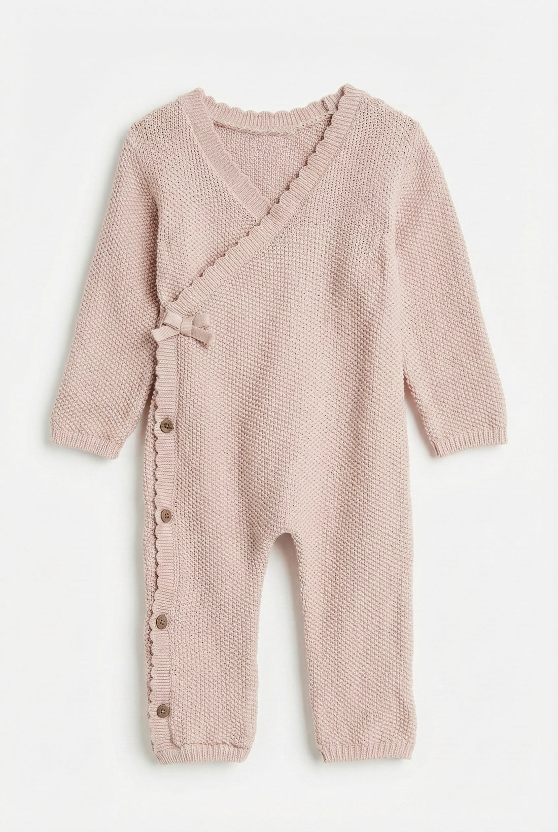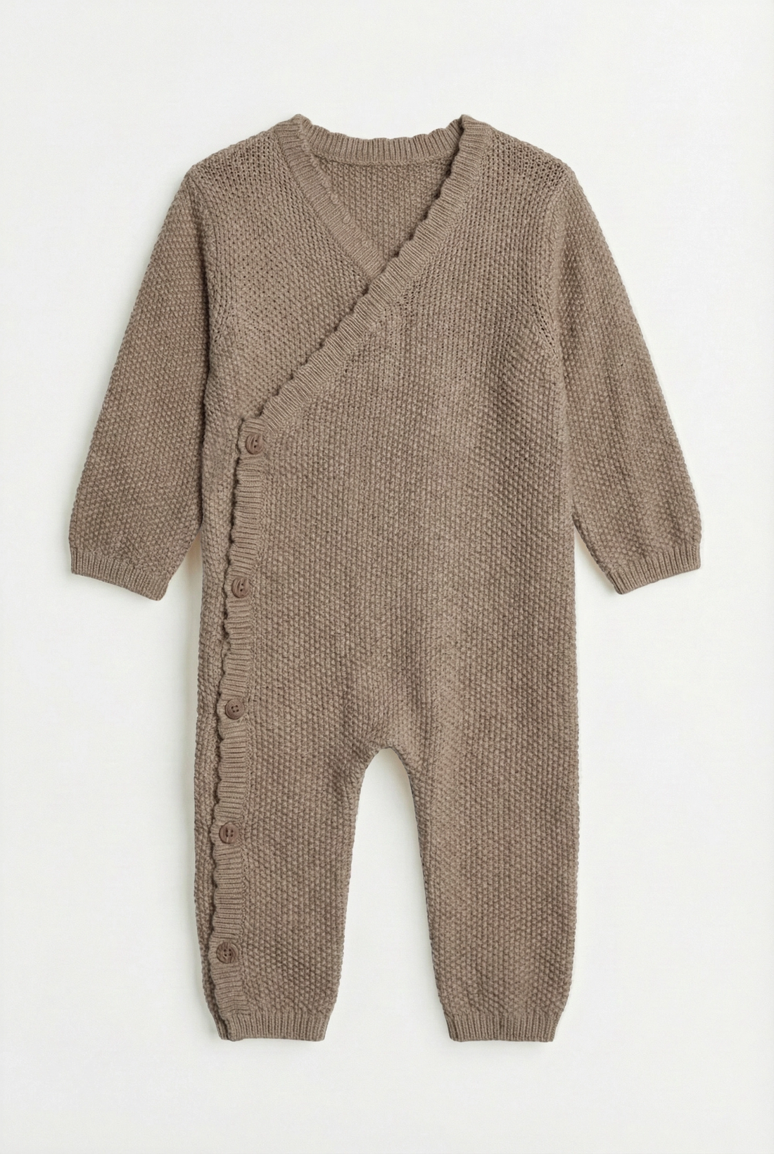 Knit Cotton Hooded Romper Suit | Soft Beige