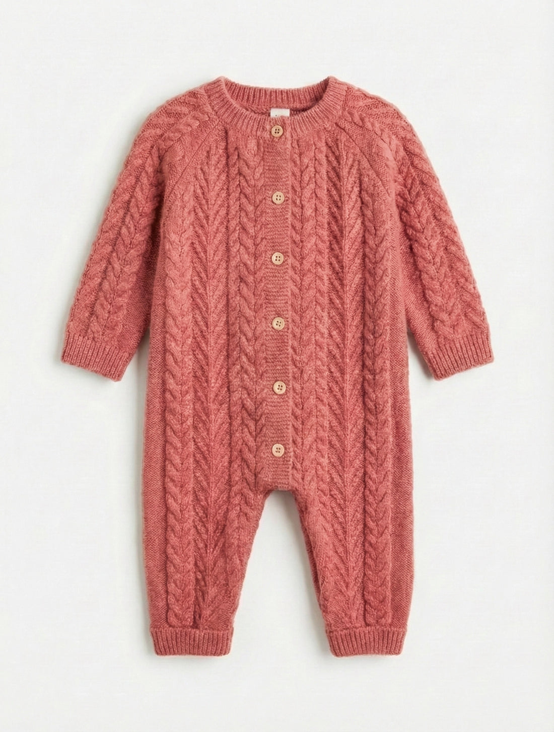 Classic Light Blue Cable Knit Baby Jumpsuit