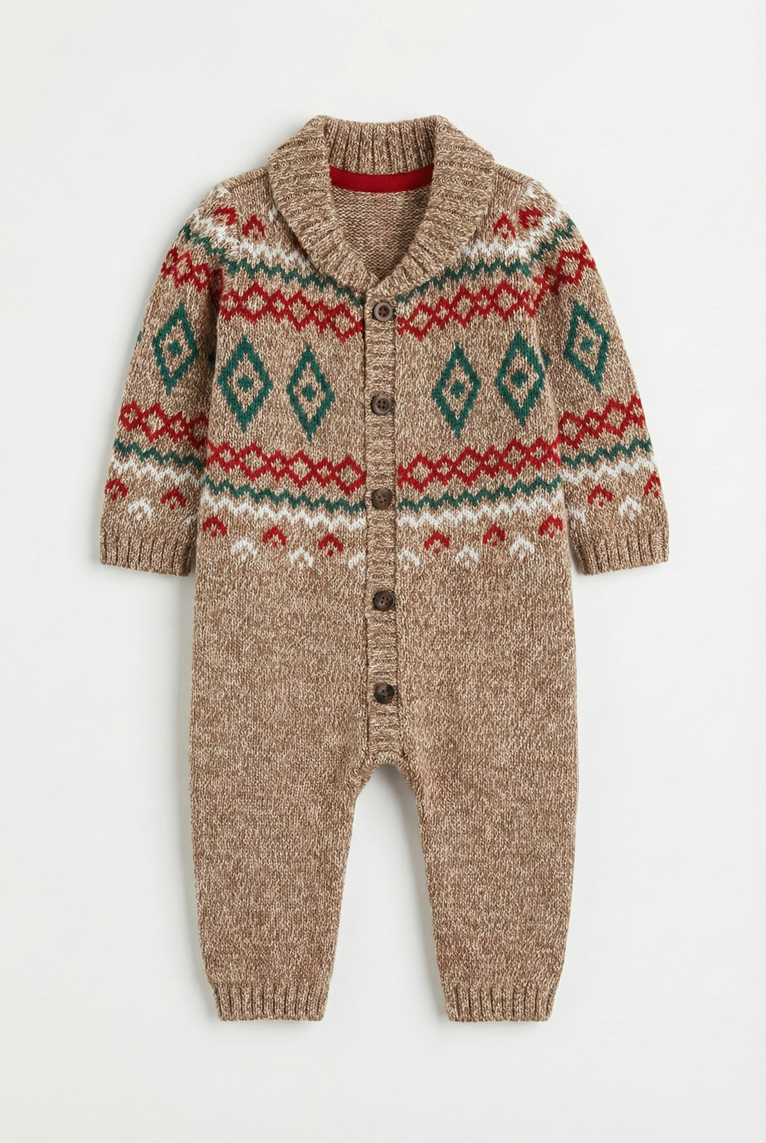 Vintage Fair Isle Knitted Romper | Cream & Pastel