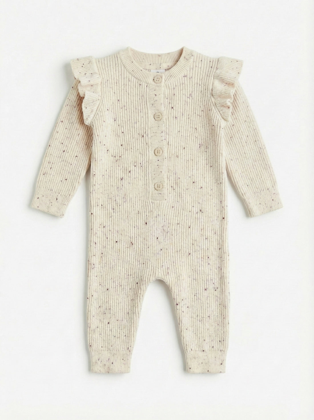 Ruffled Trimmed Sleeve Baby Romper – Cream Confetti Knit