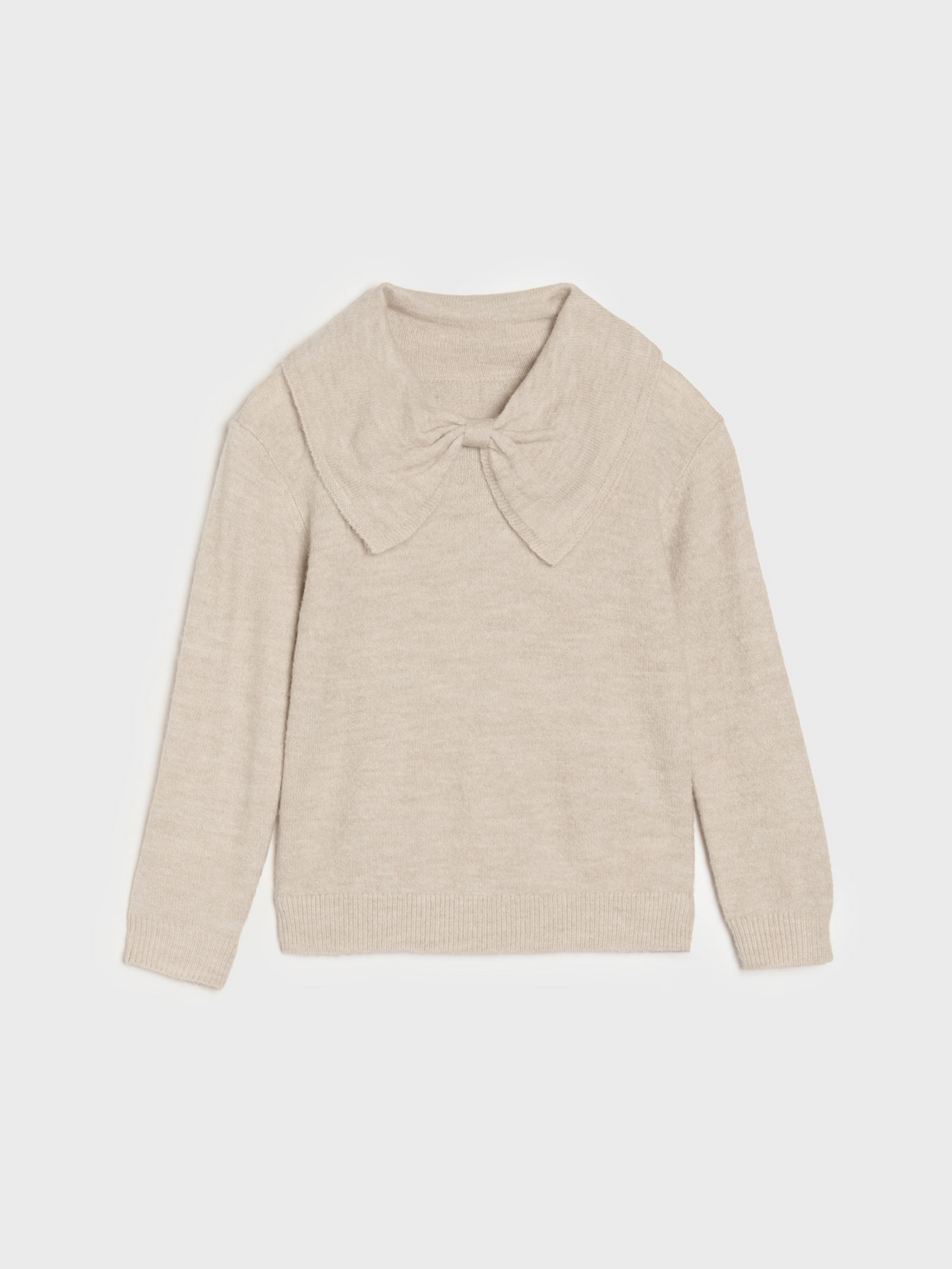 Girl's Beige Knit Sweater with Bow Collar