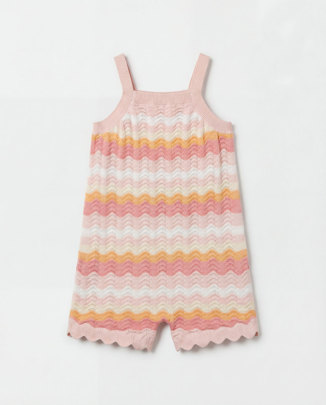 Toddler Girls’ Pastel Crochet Playsuit – 100% Cotton