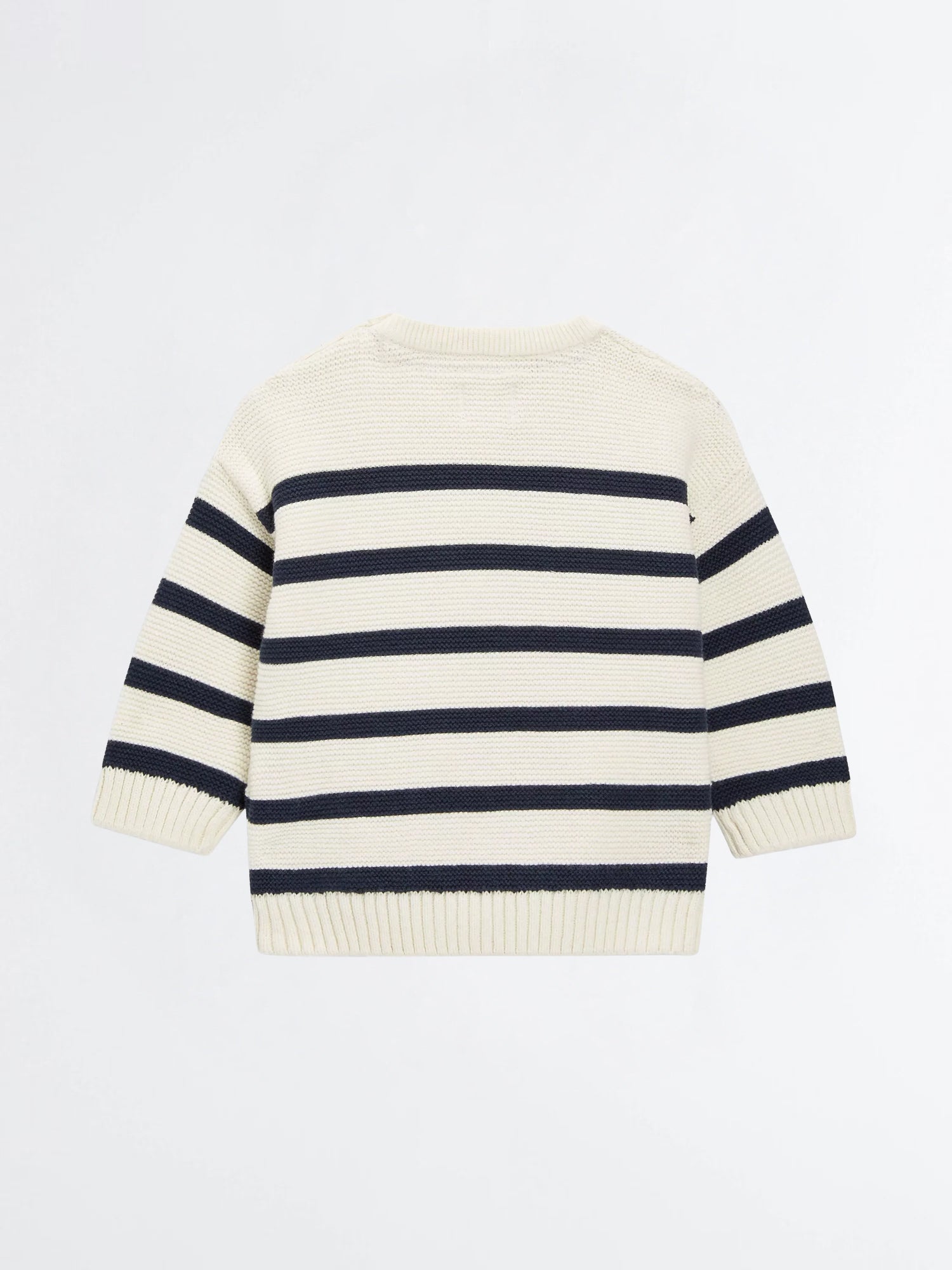 Baby Boy Striped Knit Sweater – Navy & Cream