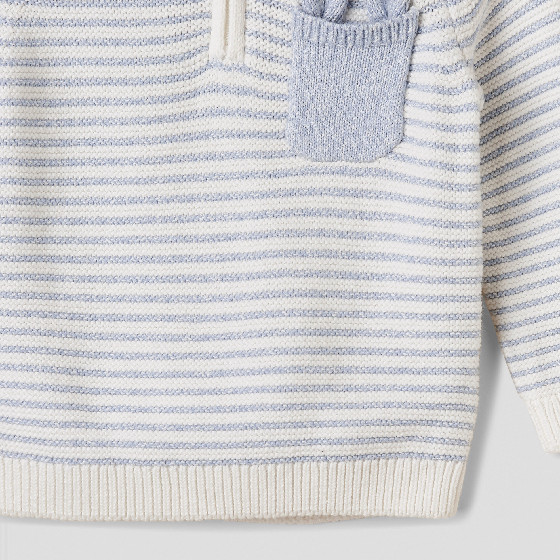 Add a dash of charm and comfort to your little champ’s winter wardrobe with this blue and white striped knit sweater. Made from 100% soft cotton, it’s designed to keep him snug without overheating — perfect for those light winter days and breezy evenings.