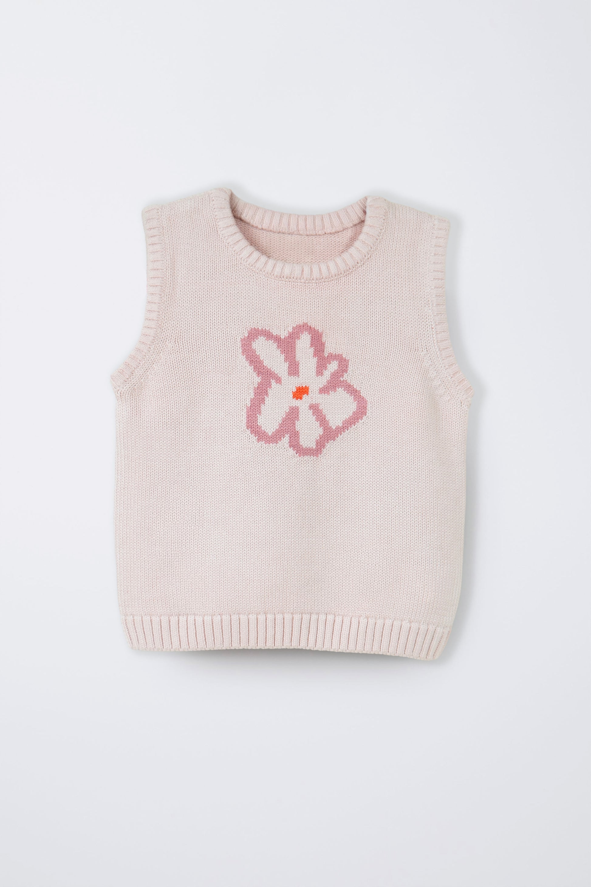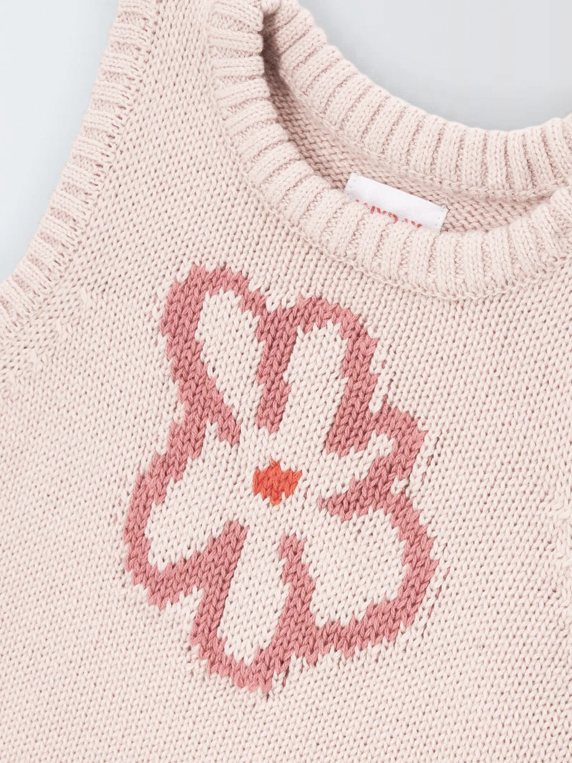 Sweet, soft, and stylish—this pink knitted sweater vest brings playful elegance to your baby girl’s wardrobe! Designed with a pretty pink flower motif and crafted from gentle cotton knit.