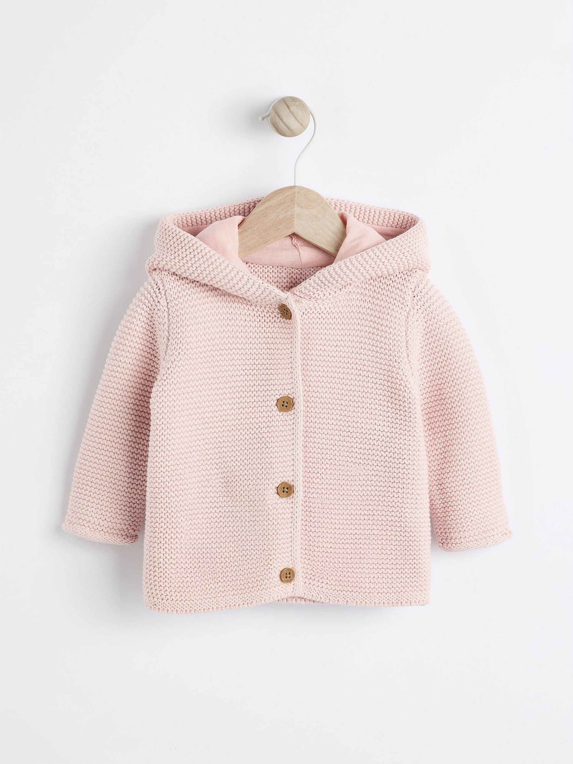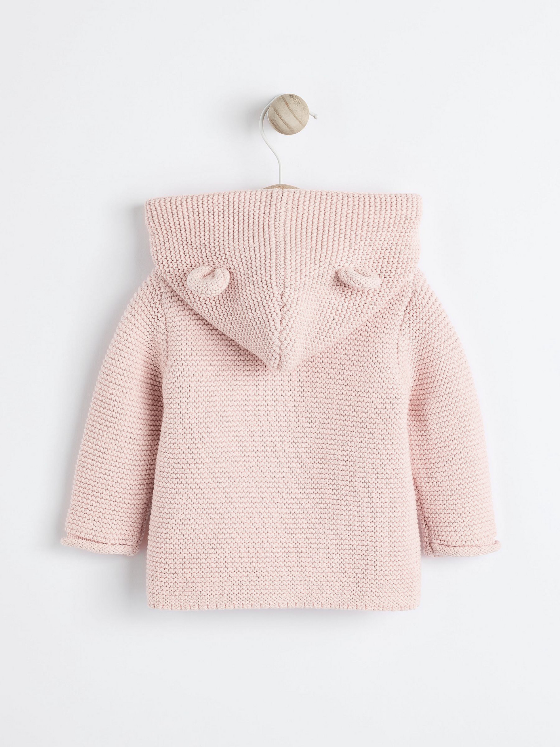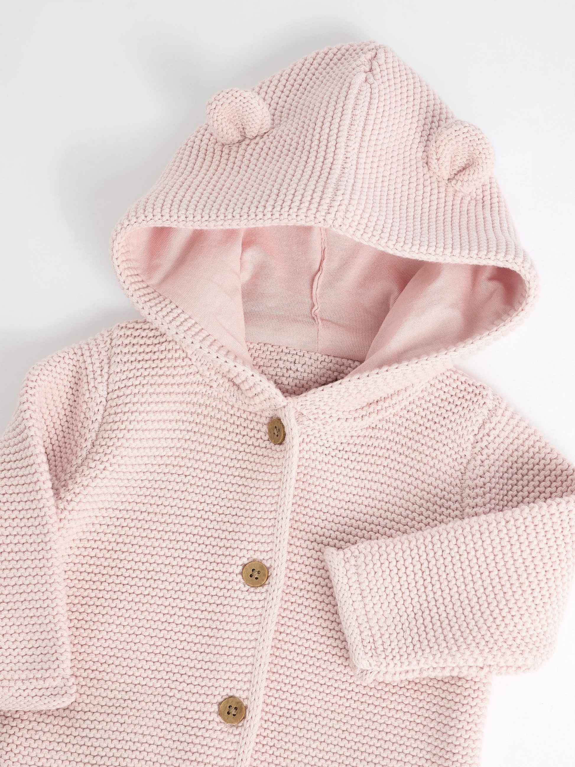 Cuteness meets comfort with this soft pink knitted hooded cardigan. Designed with playful bear ears on the hood, it adds a charming touch to your little one’s everyday outfits.