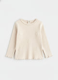 Baby Girl's Ribbed Cotton Full Sleeve T-shirt | Light Cream Color