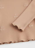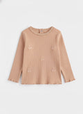 Baby Girl's Ribbed Cotton Full Sleeve T-shirt | Wooden Color