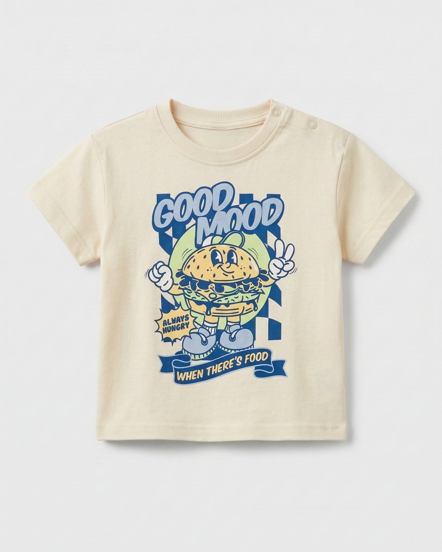 The soft cream colour paired with the fun graphic adds a cute and lively touch to any outfit. Crafted from soft, breathable cotton, this tee keeps your baby comfortable throughout the day.