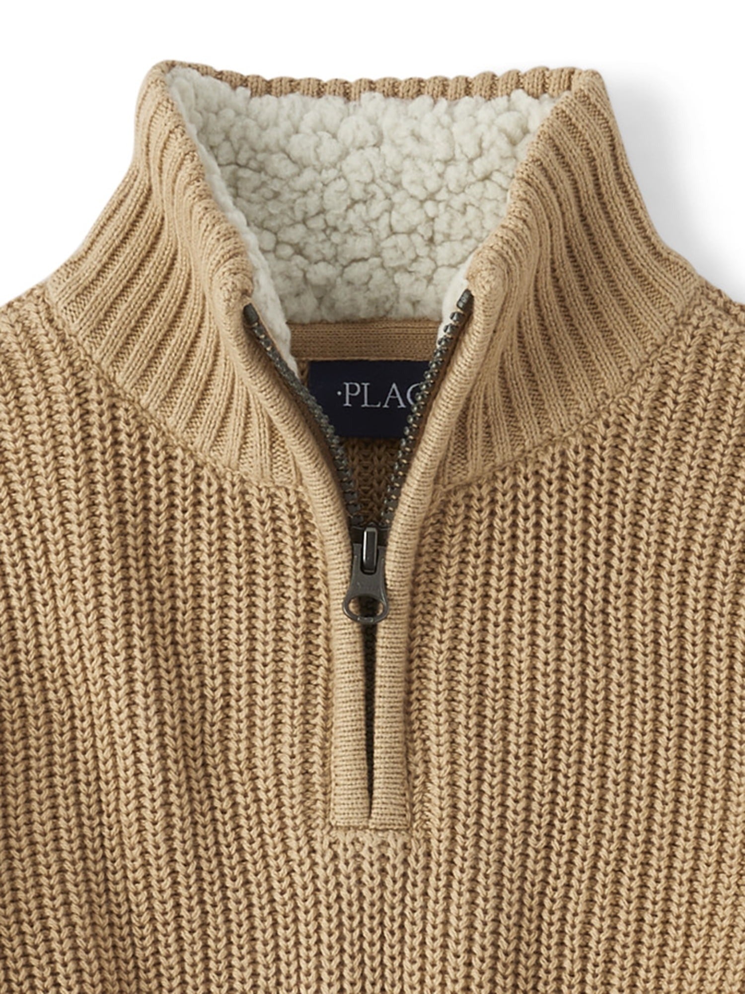 Warm, classic, and effortlessly cool—this Boys’ Ribbed Knit Pullover is made for cozy winter adventures. The plush sherpa-lined collar offers soft comfort, while the chunky ribbed texture adds a timeless look.