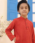 Boy's Textured Panjabi & Pyjama Set - Red