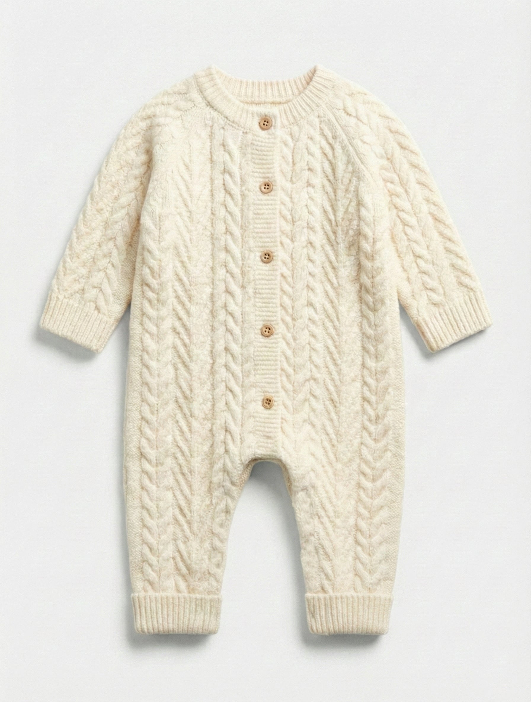 Made from a soft, breathable knit fabric, it features a textured cable pattern that gives it a luxurious, timeless look—perfect for holiday photos, family gatherings, or just a cozy nap at home.