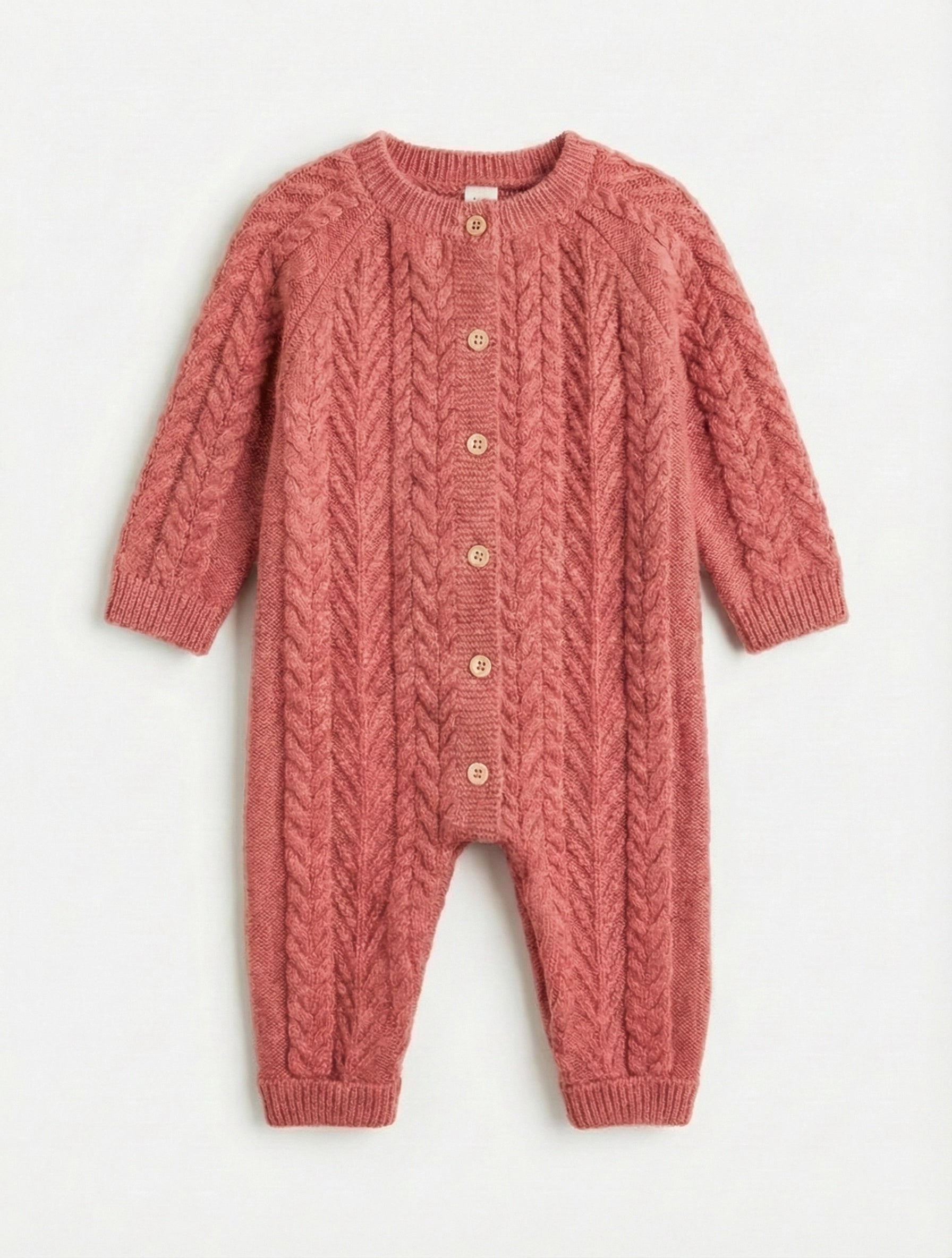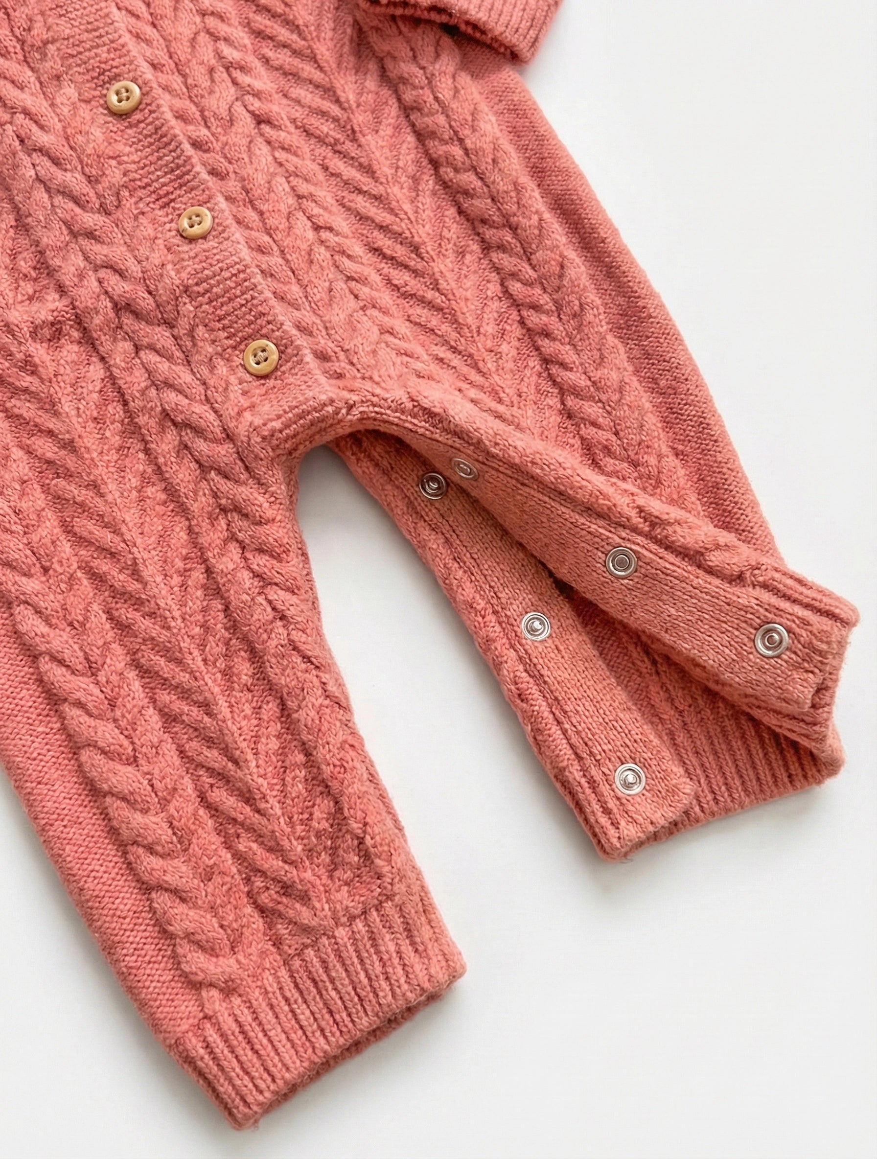This Pale Salmon Cable Knit Romper is the perfect blend of classic style and modern convenience.