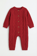 Cable Knit Baby Romper | Red