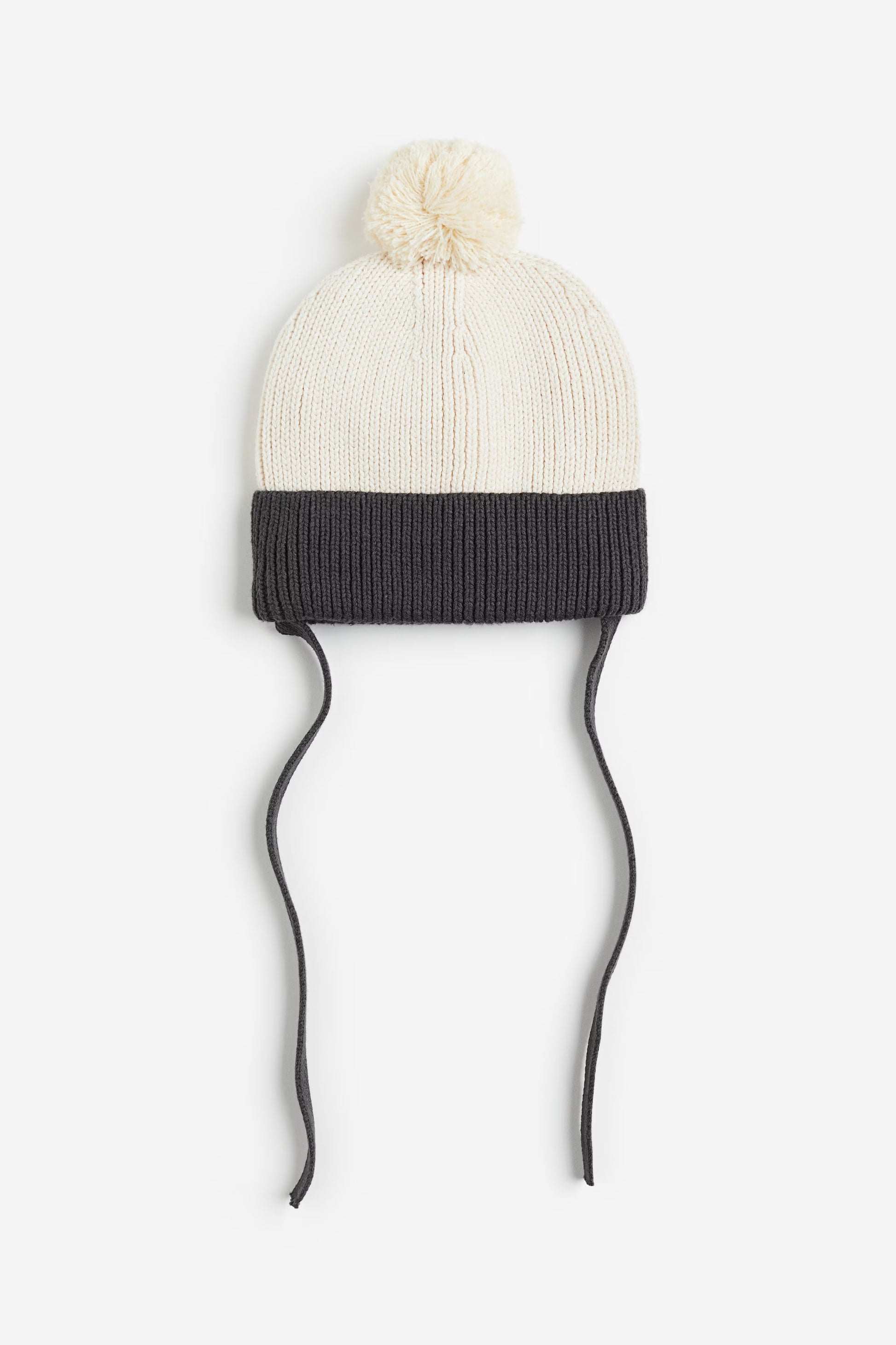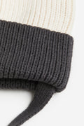 Keep your little one cozy and cute with this cream and charcoal knit pom-pom hat. Crafted from ultra-soft cotton yarn, it’s designed to keep tiny heads warm during chilly days. The adorable pom-pom top adds a playful touch, while the tie strings ensure a secure and comfy fit. Perfect for outdoor strolls or winter photos!