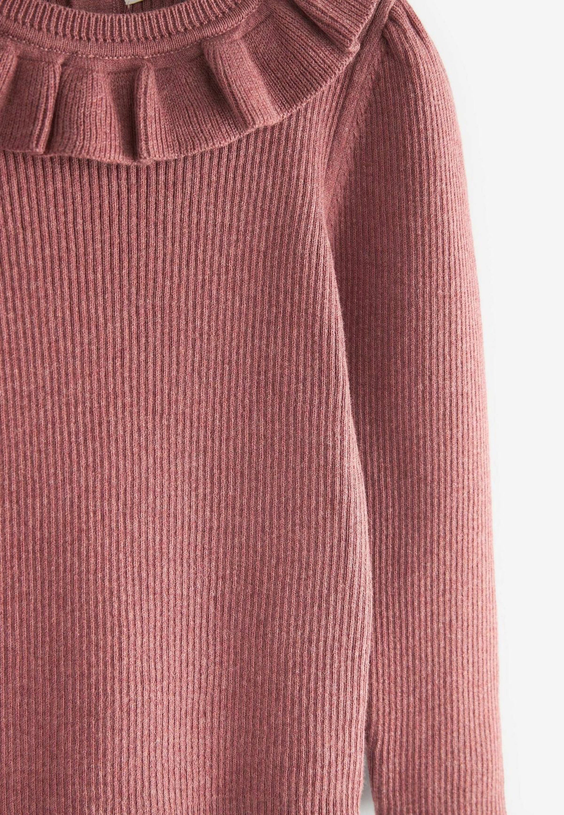 Girl's Frill Neck knitted Jumper | Ribbed Cotton, Dusty Pink