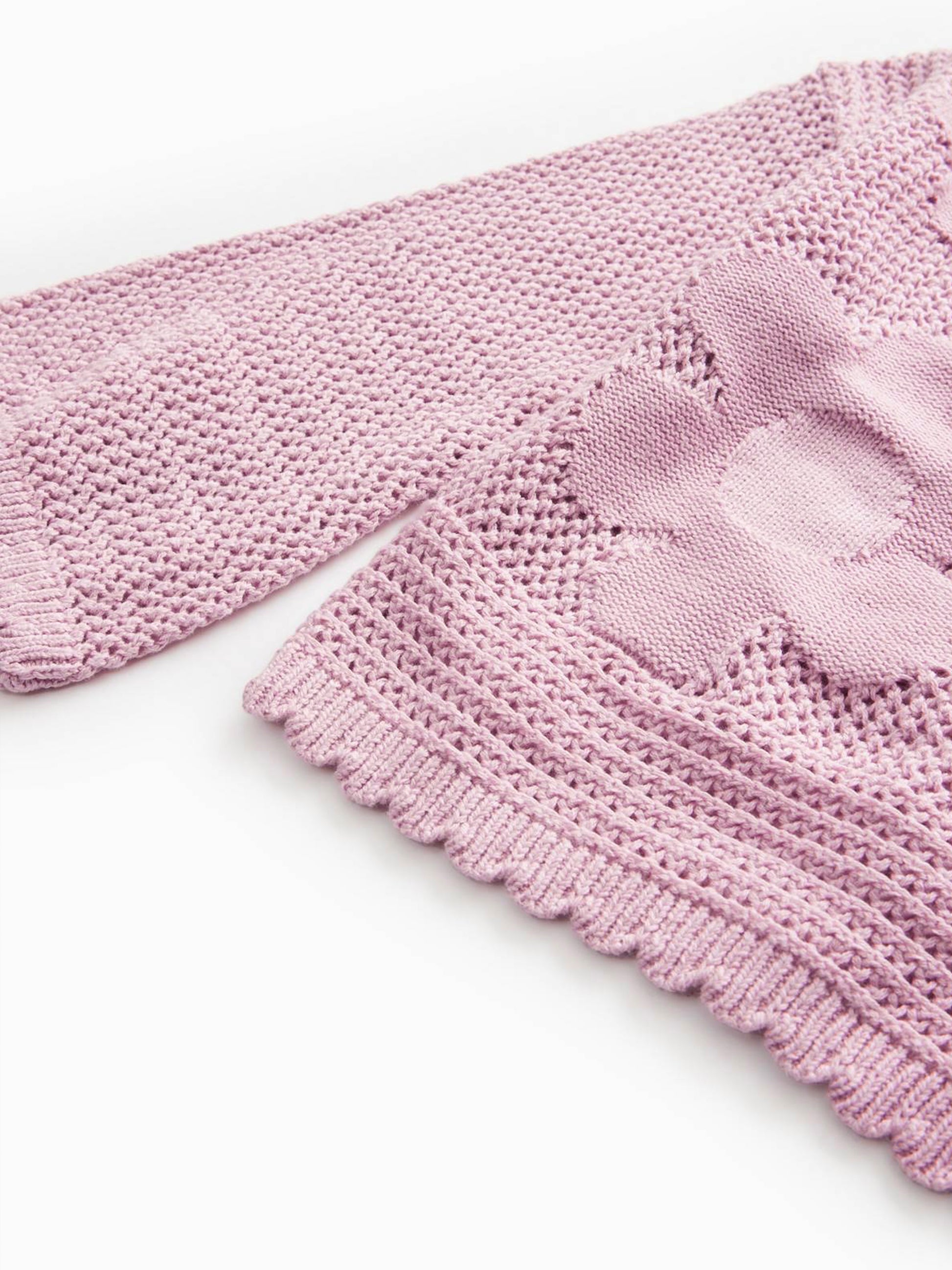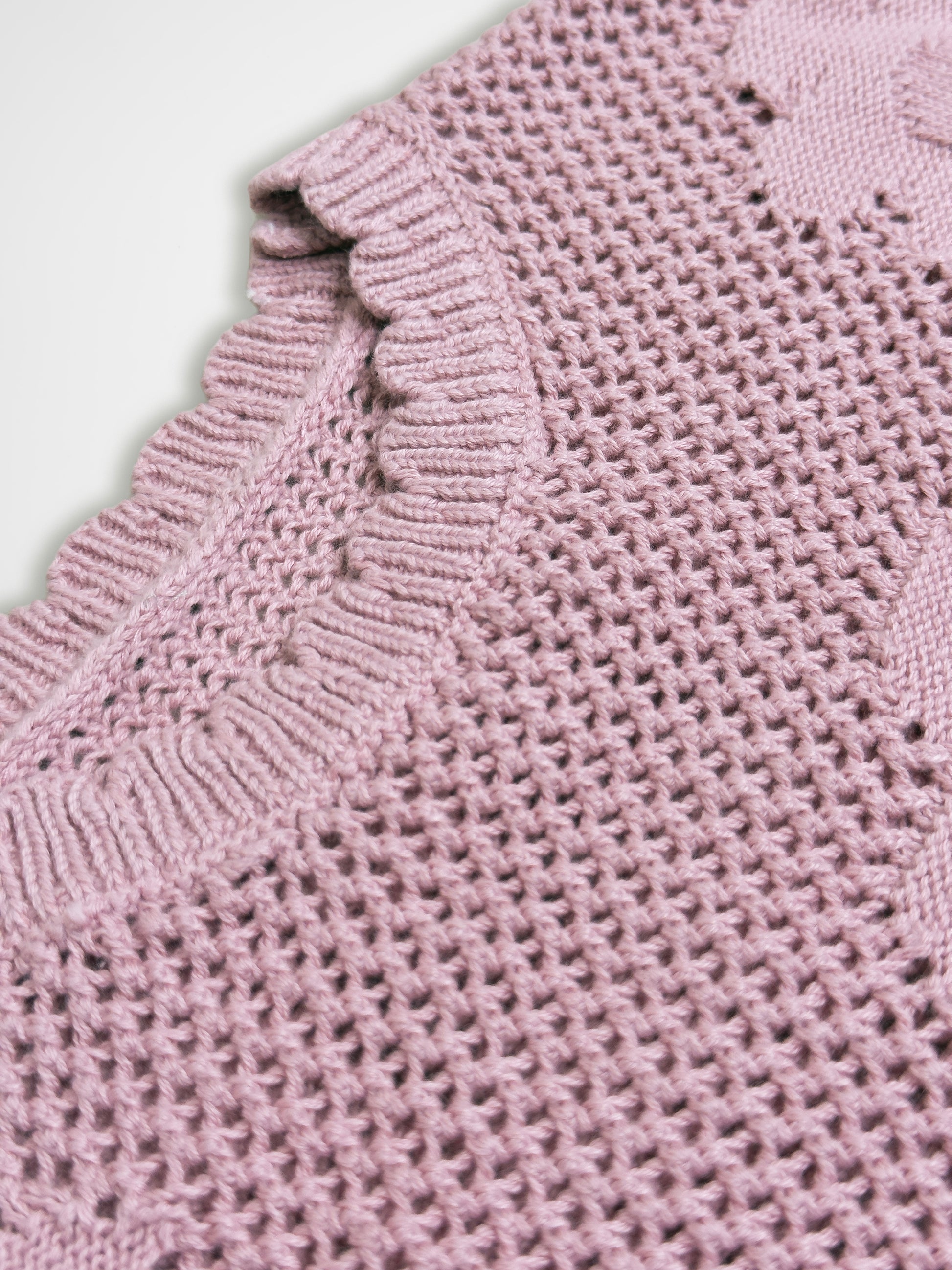 Add a touch of vintage charm to her wardrobe with this beautifully crafted open-knit sweater. Designed in a lovely dusty rose, this piece is wonderfully light and breathable, making it the perfect layer for transitional weather.