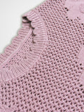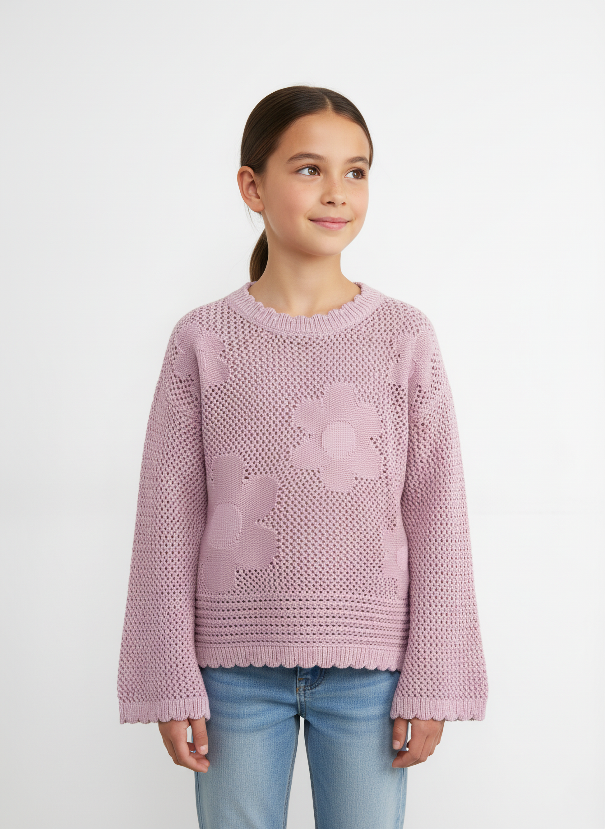 Girl's Open Knit Floral Bell Sleeve Drop Shoulder Jumper