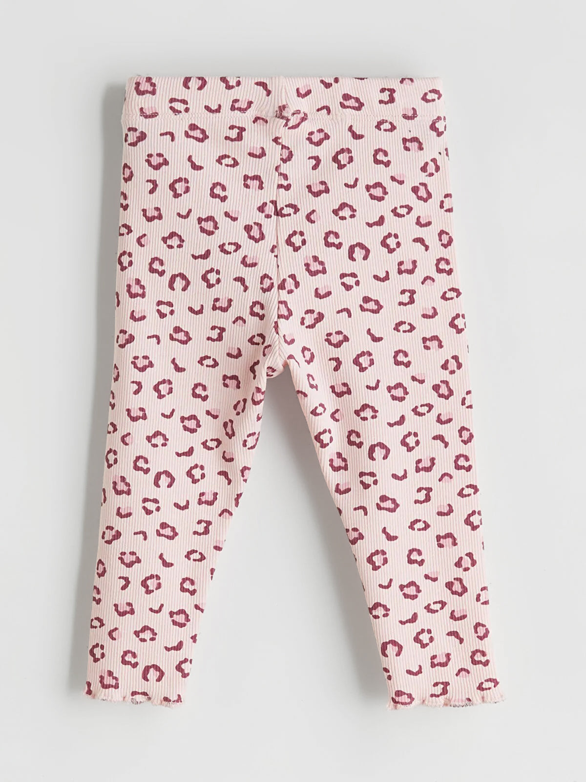 Girls’ Ribbed Cotton Leopard Print Leggings – Pink