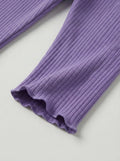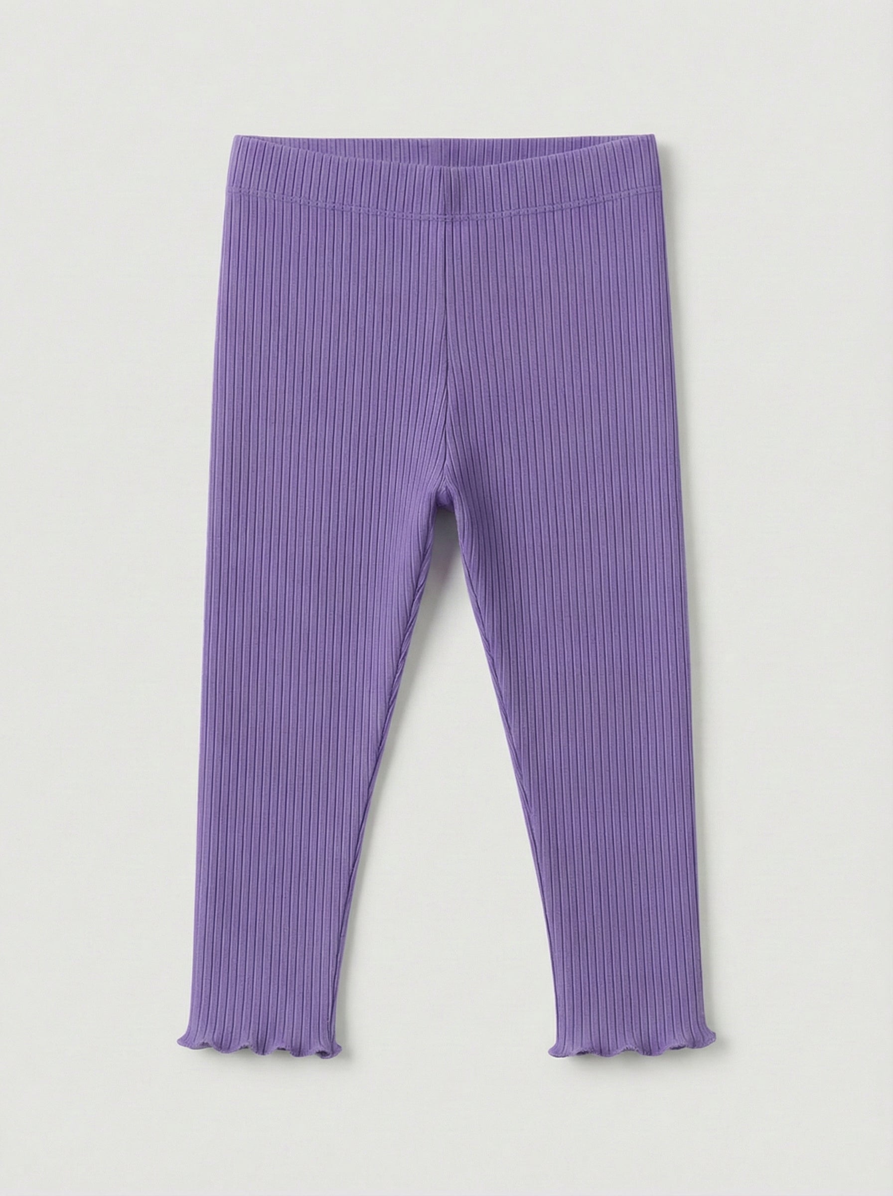 Add a pop of color and texture to her wardrobe! These soft purple ribbed leggings feature a sweet lettuce-edge hem and a stretchy fit for all-day comfort.