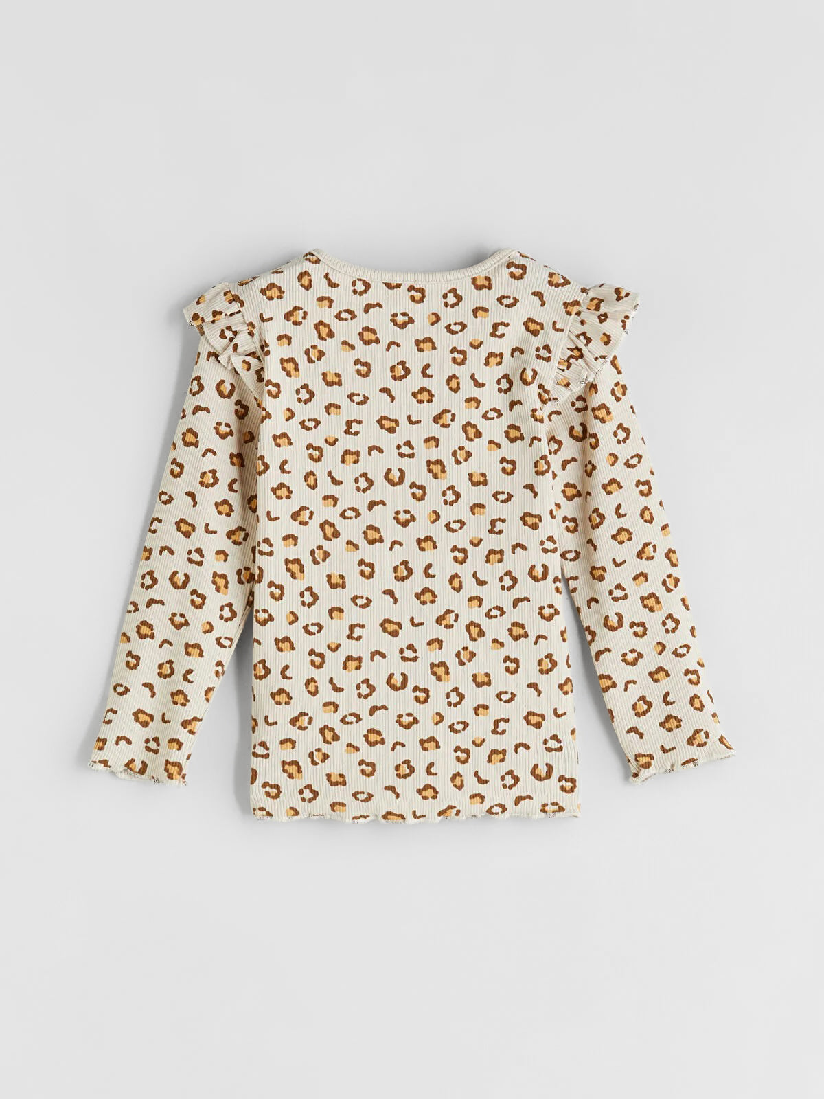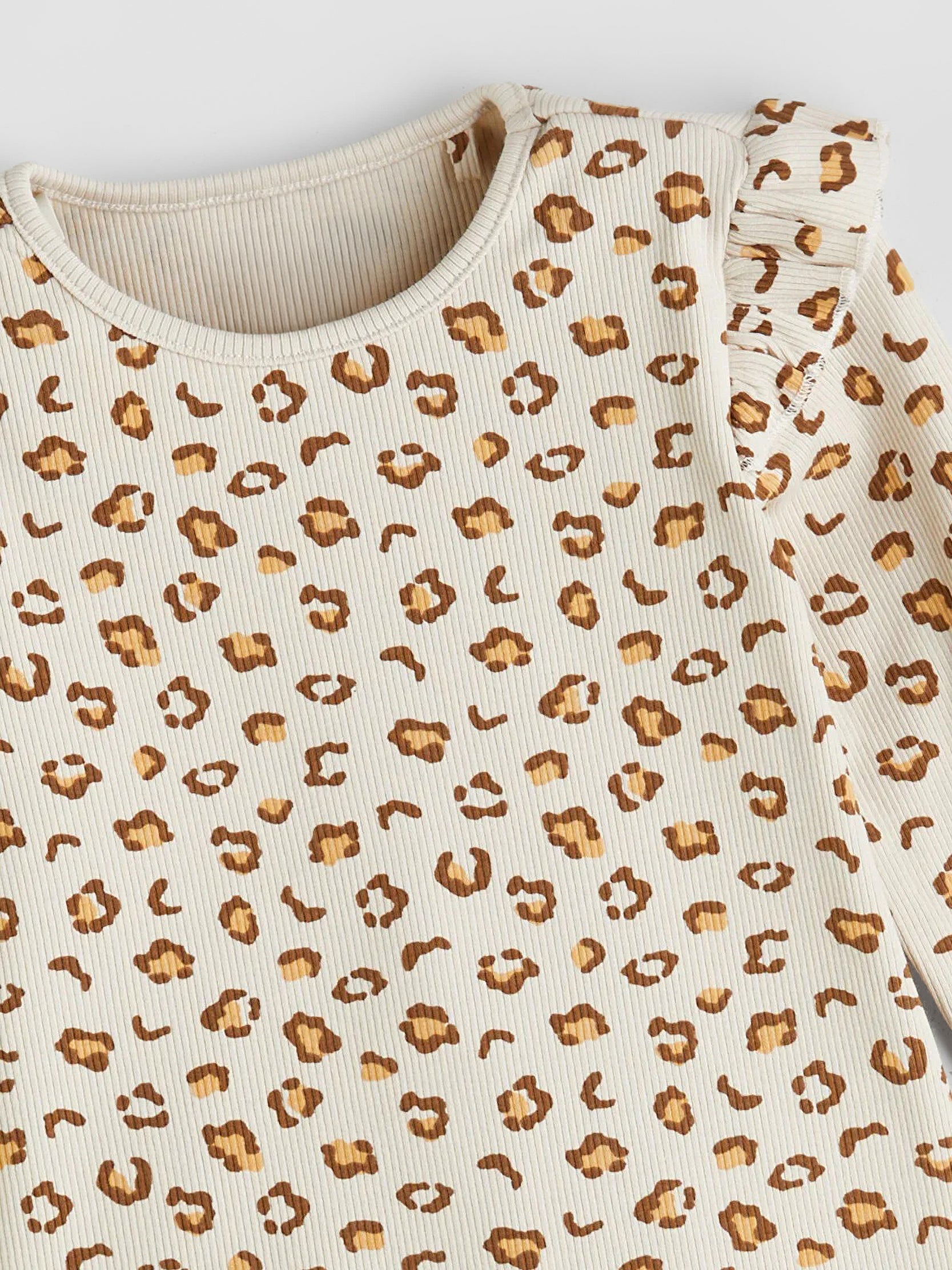 Bring a touch of wild style to your little one’s winter wardrobe with this adorable beige ribbed full sleeve top featuring a trendy leopard print!