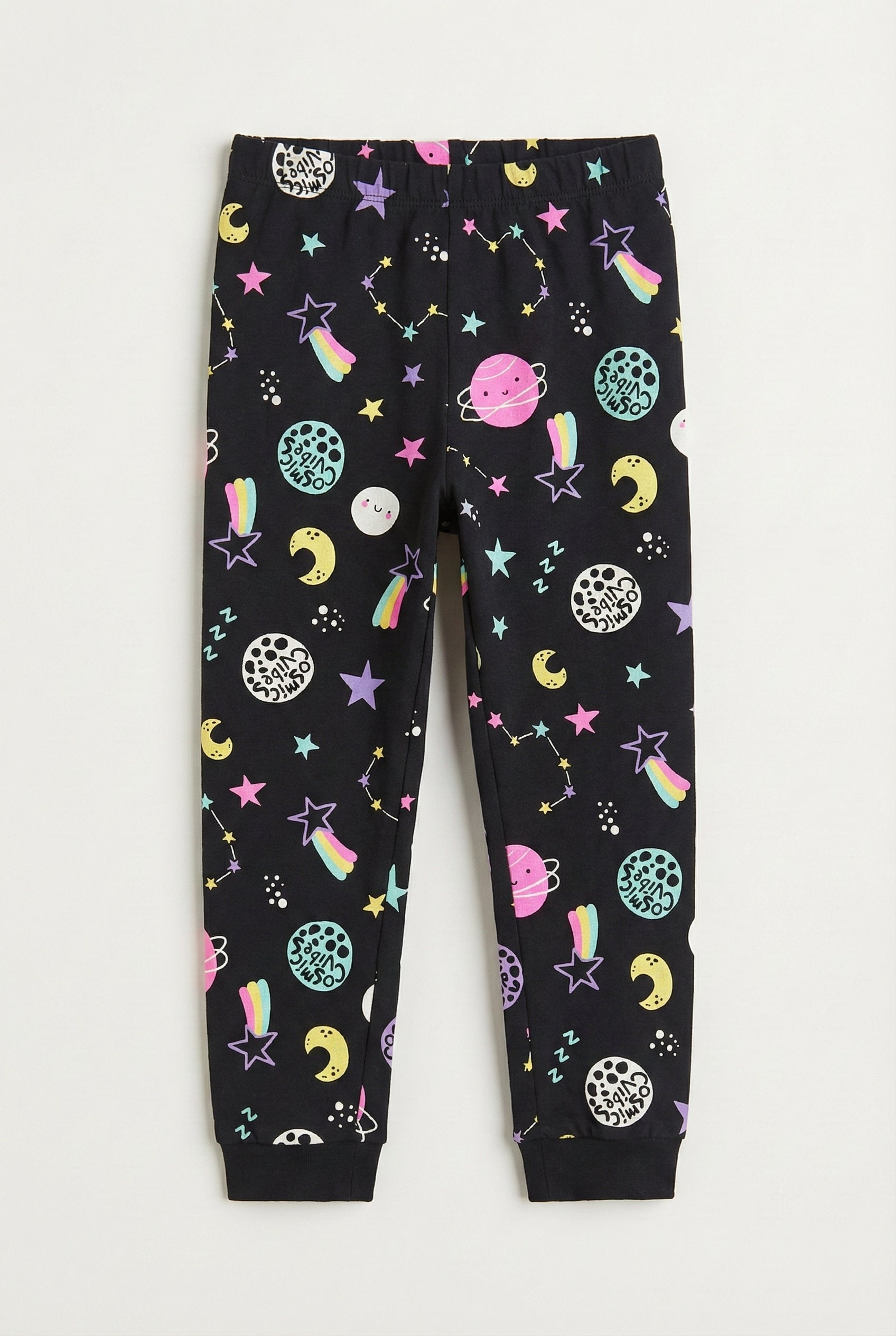 Girl's Stretchable Cotton Fabric Leggings | Black, Cosmic Vibe