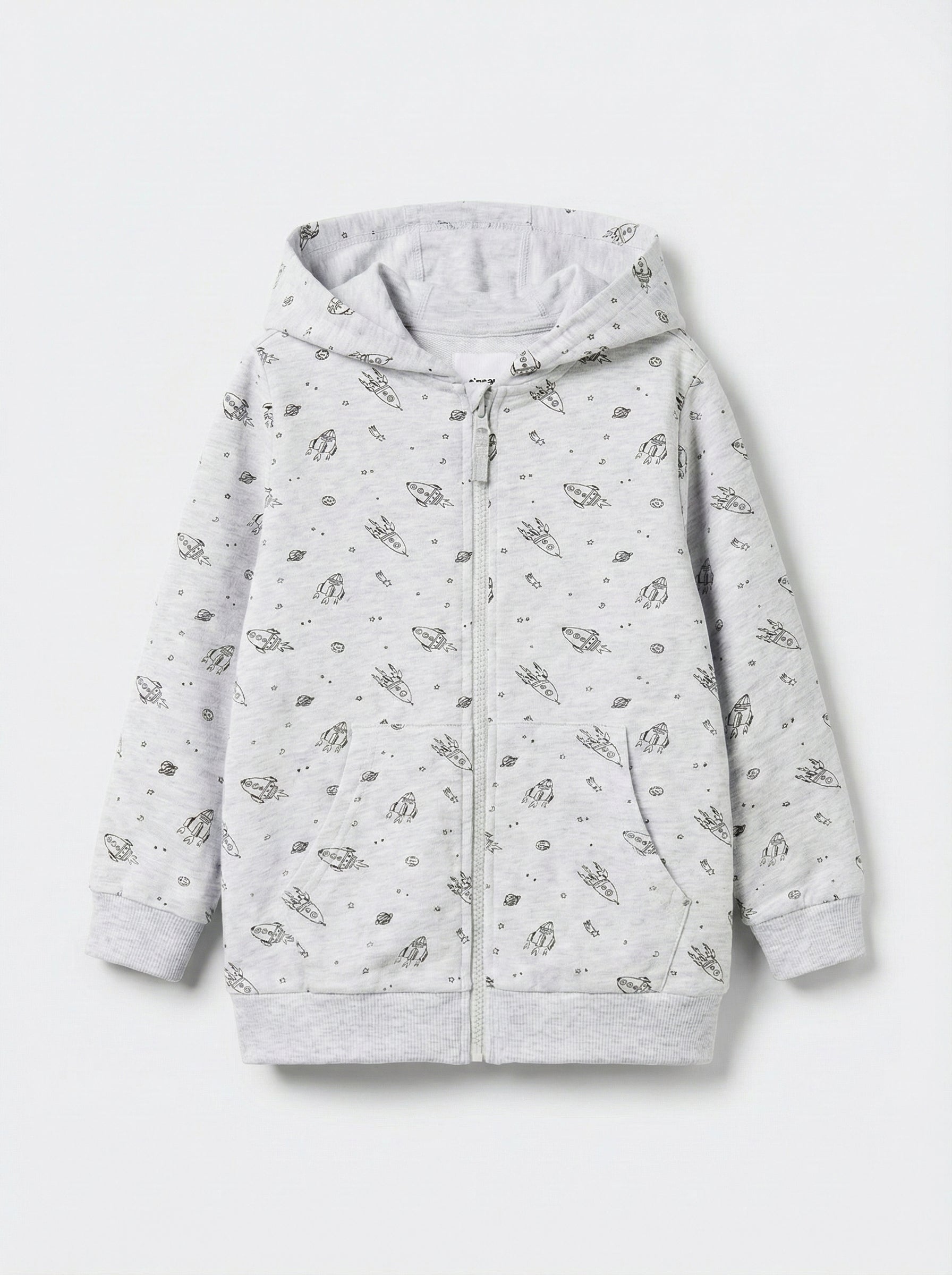 Kids Zip Through Hoodie | Cotton, Zipper, Kangaroo Pocket, Grey