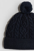 Meet your new favorite winter hat: our classic cable-knit beanie in a deep navy blue. This timeless piece combines traditional style with cozy comfort. The detailed cable-knit pattern adds texture and sophistication.