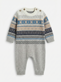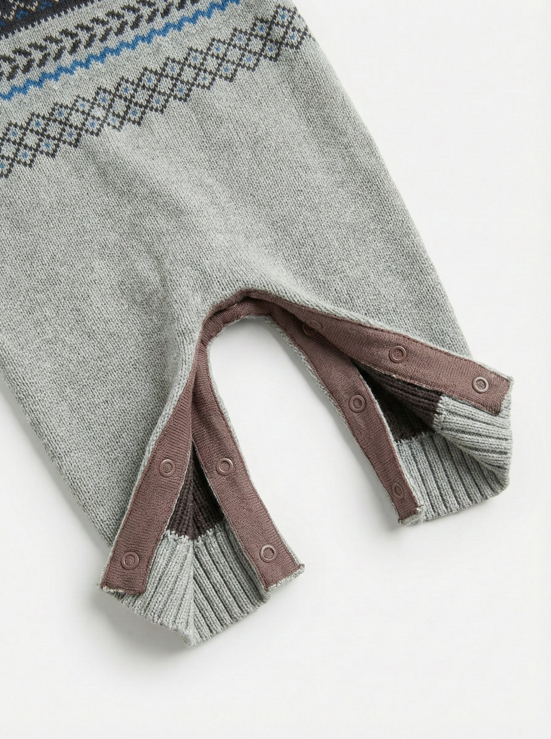 Nordic Knit Baby Romper| Soft Grey & Fair Isle