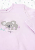 Drift off to sweet dreams in this adorable lilac baby romper, featuring a gentle koala graphic. Made from a soft, comfortable knit, this long-sleeve sleepsuit is designed to be cozy against your baby's skin for all-day wear and peaceful nights.