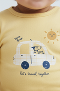 Get your little one ready for all their adventures in this delightfully cheerful mustard yellow pure cotton romper. Crafted from soft, breathable cotton, this long-sleeve, footed sleepsuit is perfect for cozy cuddles, active play, and restful sleep.