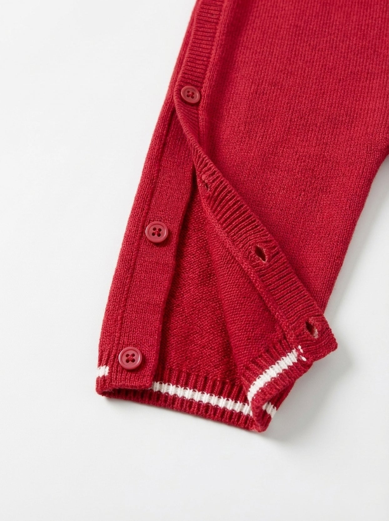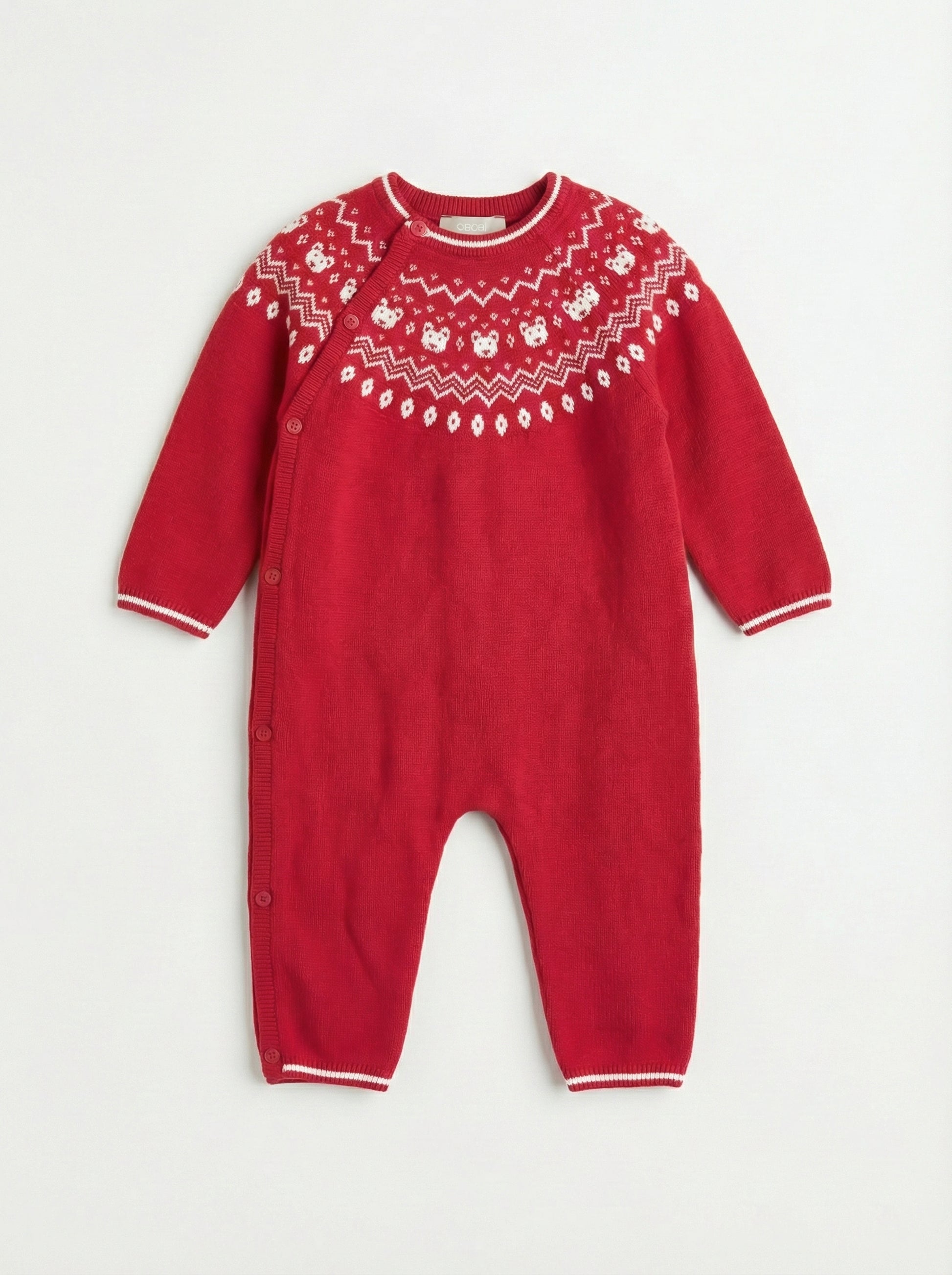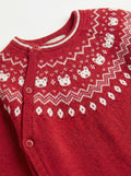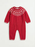 Red Nordic Knit Baby Romper | Side Button Opening