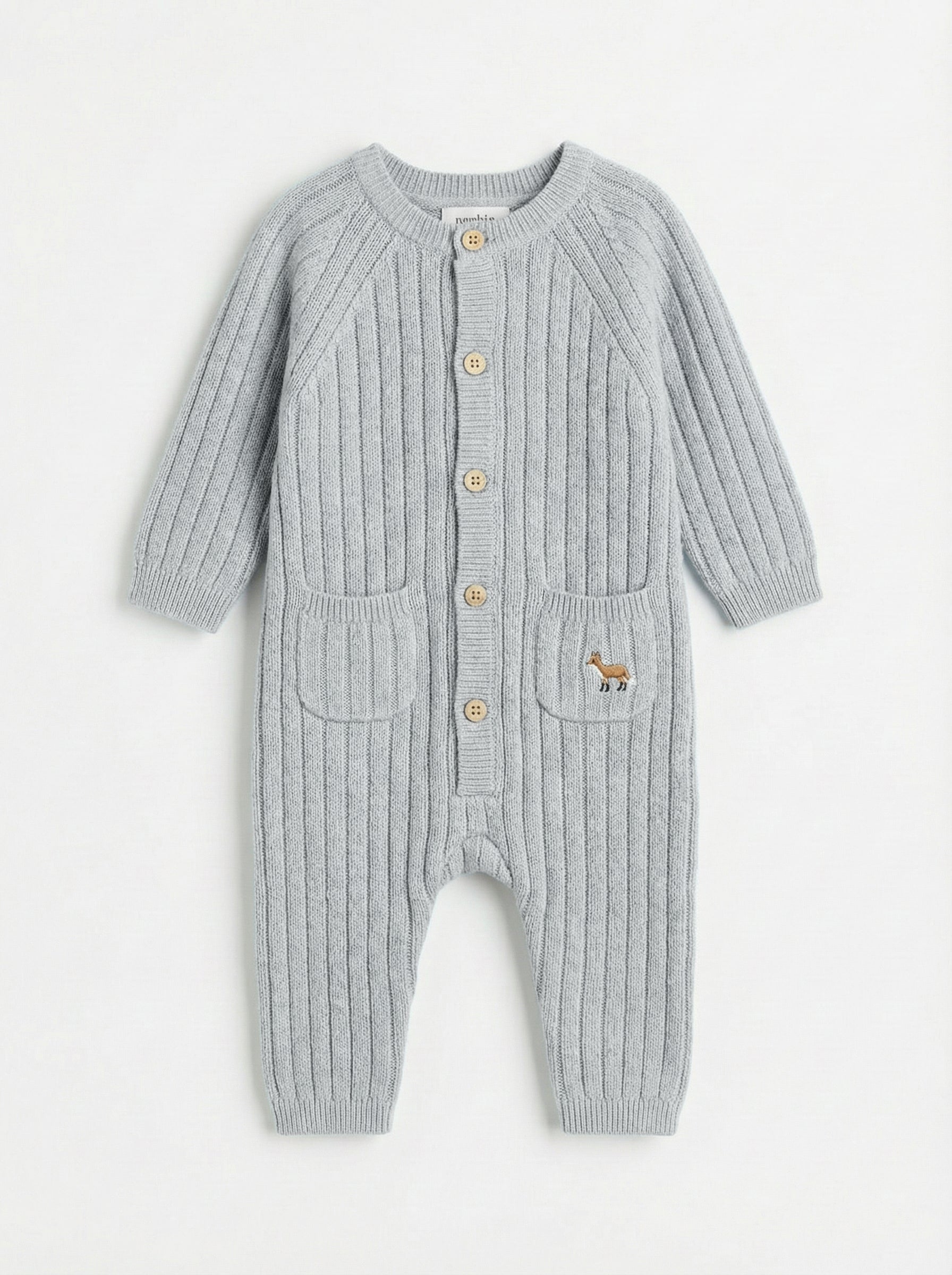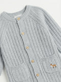 Ribbed Knit Baby Romper with Deer Embroidery - Light grey