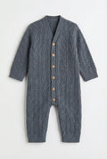 Soft Cable Knit Baby Romper | Slate Blue