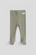Keep your little one cozy in these buttery-soft olive green ribbed leggings. Featuring a comfy, stretchable waist and built-in socks, they’re perfect for fuss-free dressing and all-day snuggles.