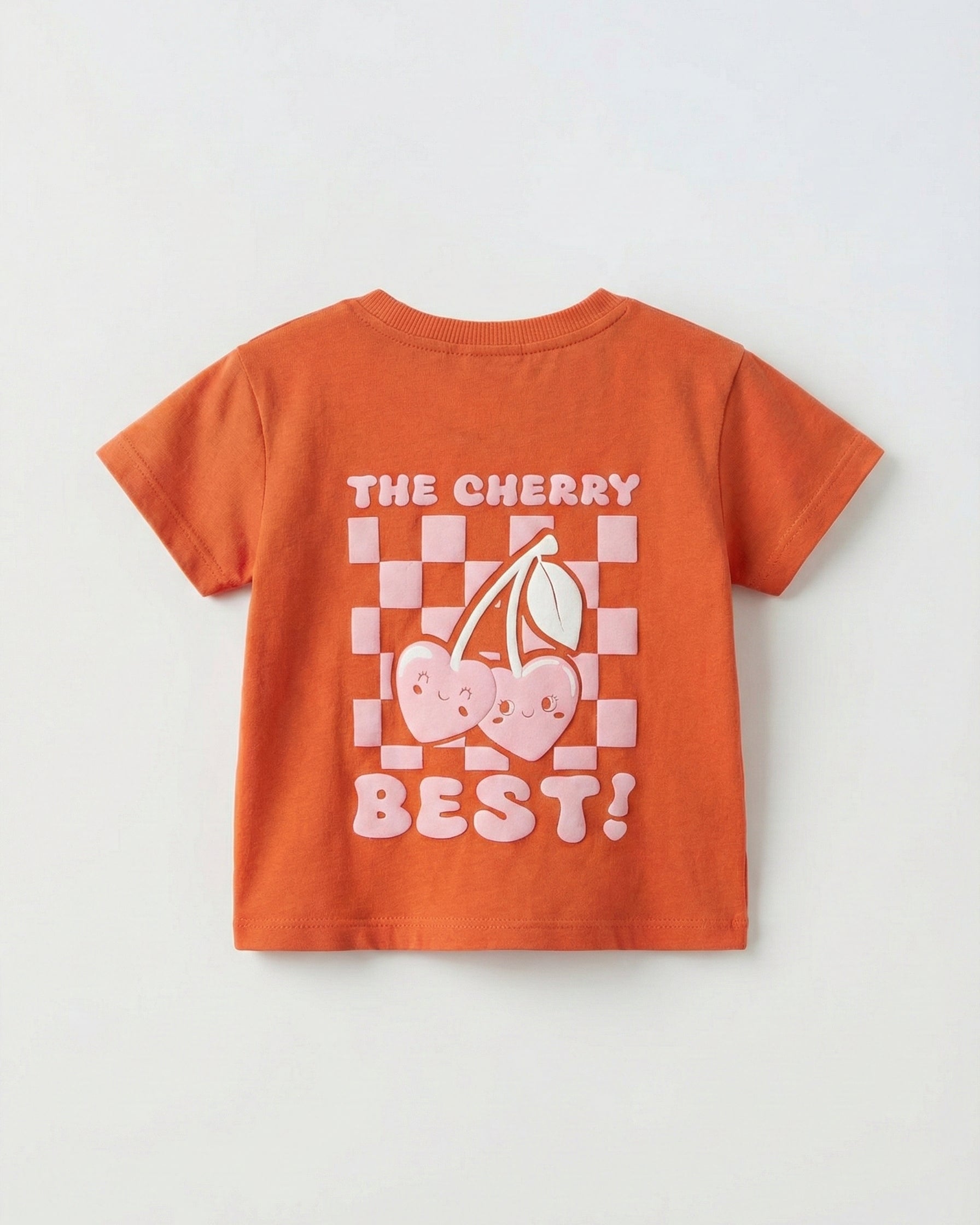 Toddler Girl's Half Sleeve Cotton T-Shirt | Orange Cherry Print