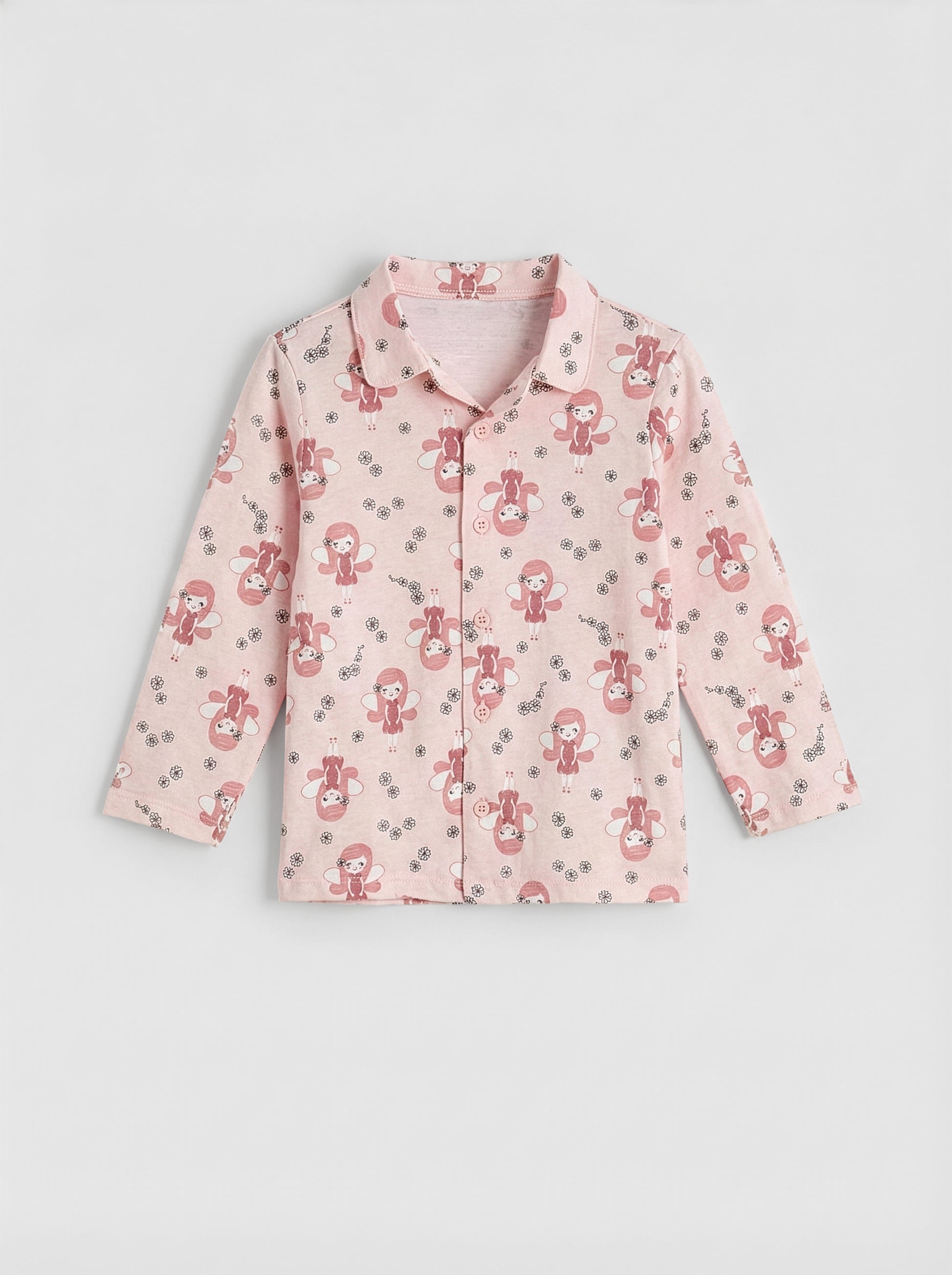 Toddler Girls Pink Fairy Print Long Sleeve Button-Down Shirt