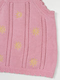 Brighten up her winter days with this sweet pink knit tank top, decorated with playful yellow sun embroideries designed as a cozy layering piece for winter..