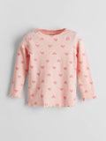 Toddler Girls’ Ribbed Cotton Full Sleeve Top – Pink Heart Print