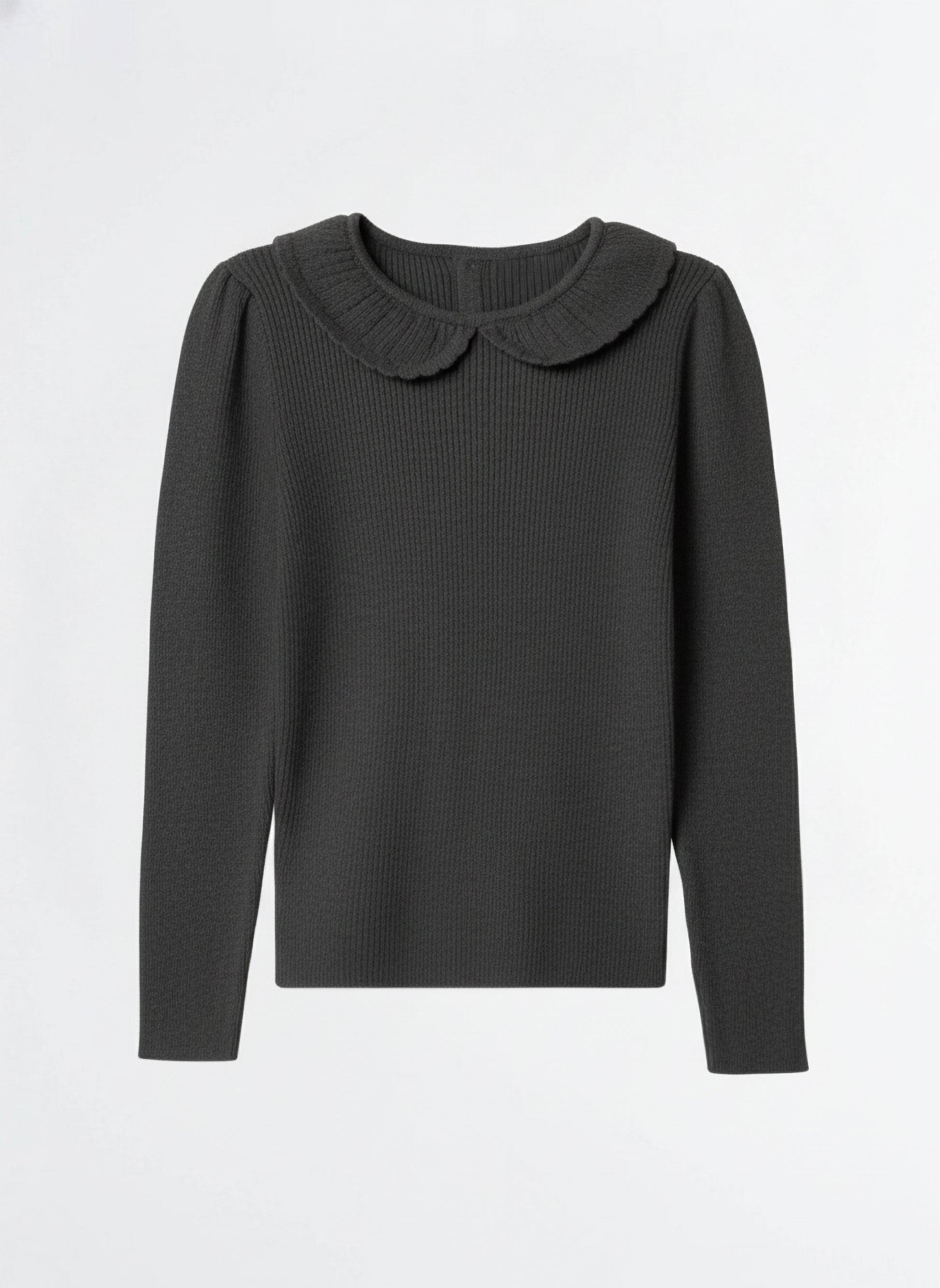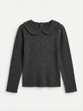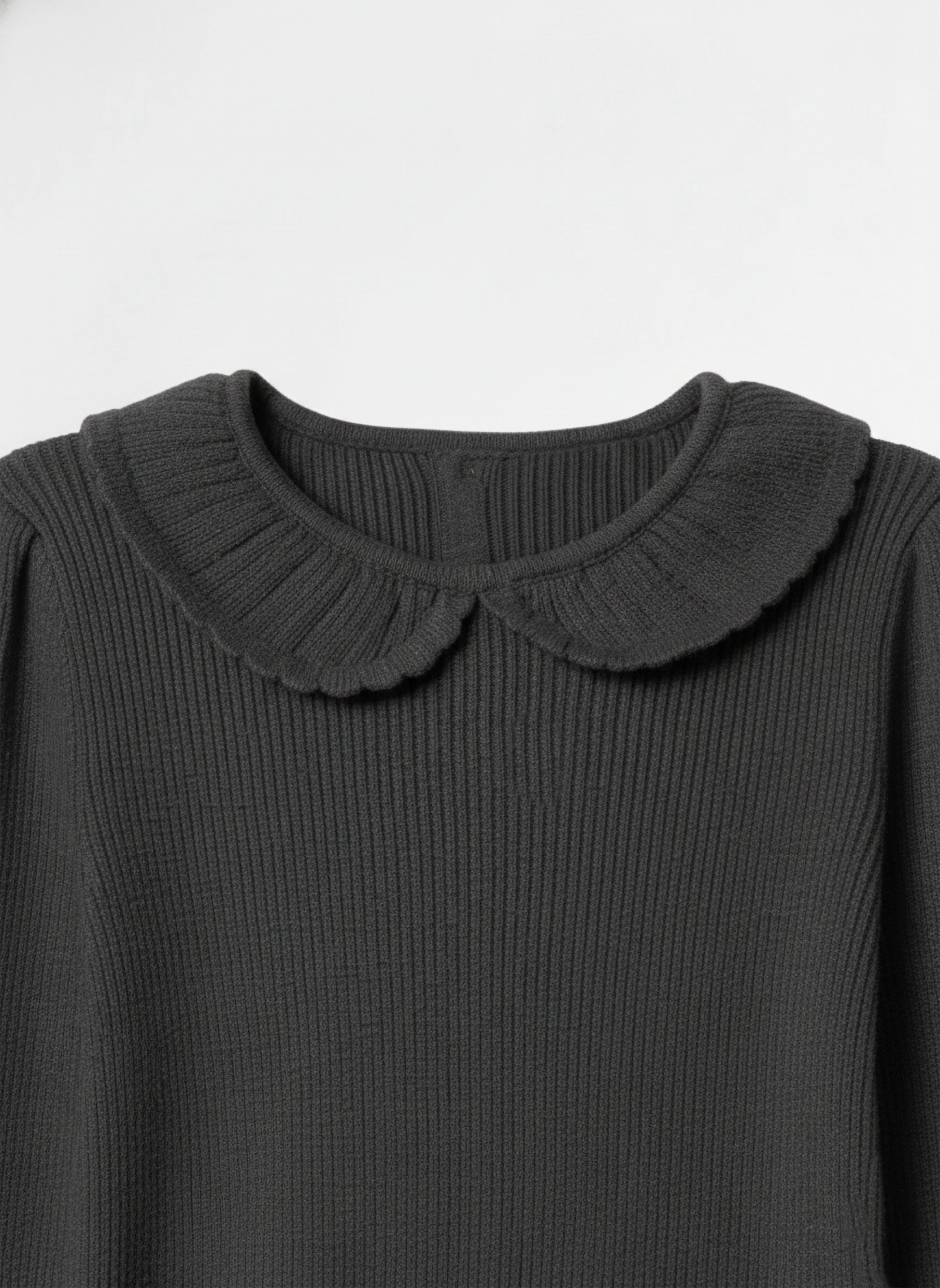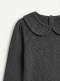 Toddler Girls’ Ribbed Knit Long Sleeve Top with Peter Pan Collar – Charcoal Black