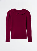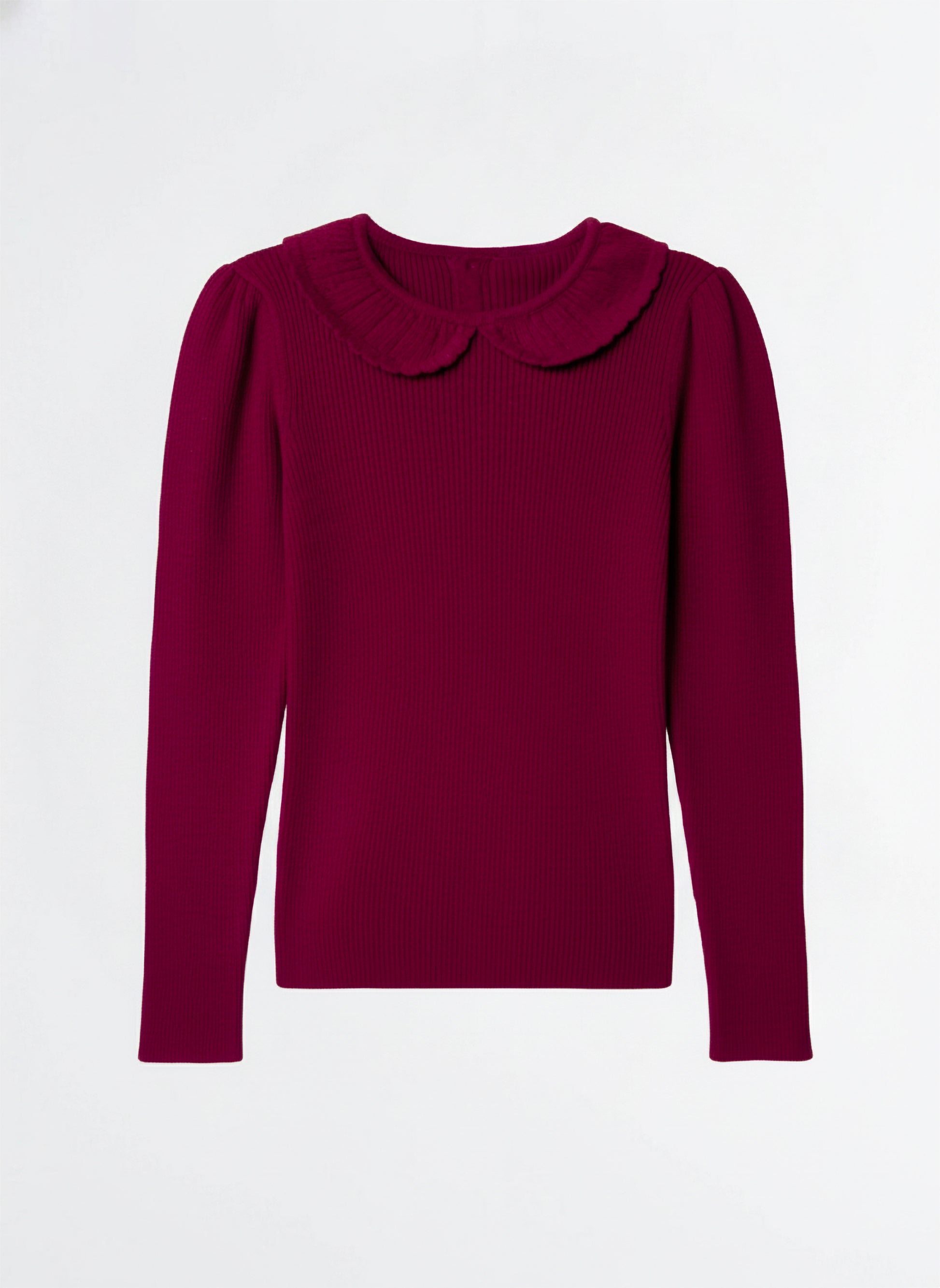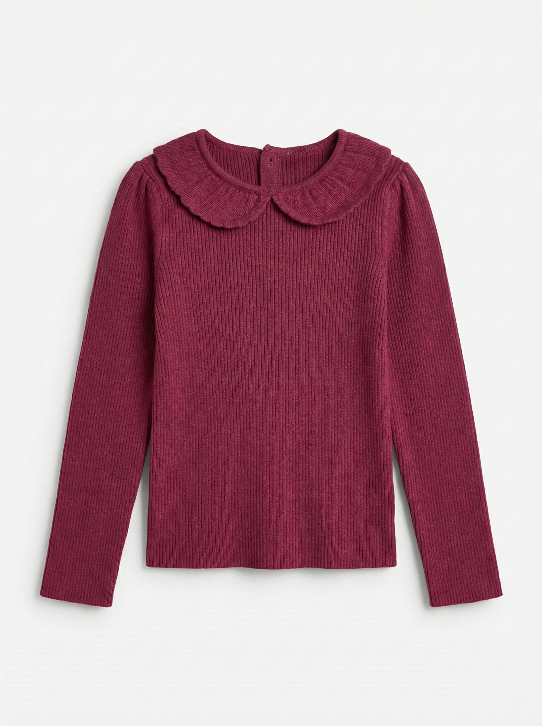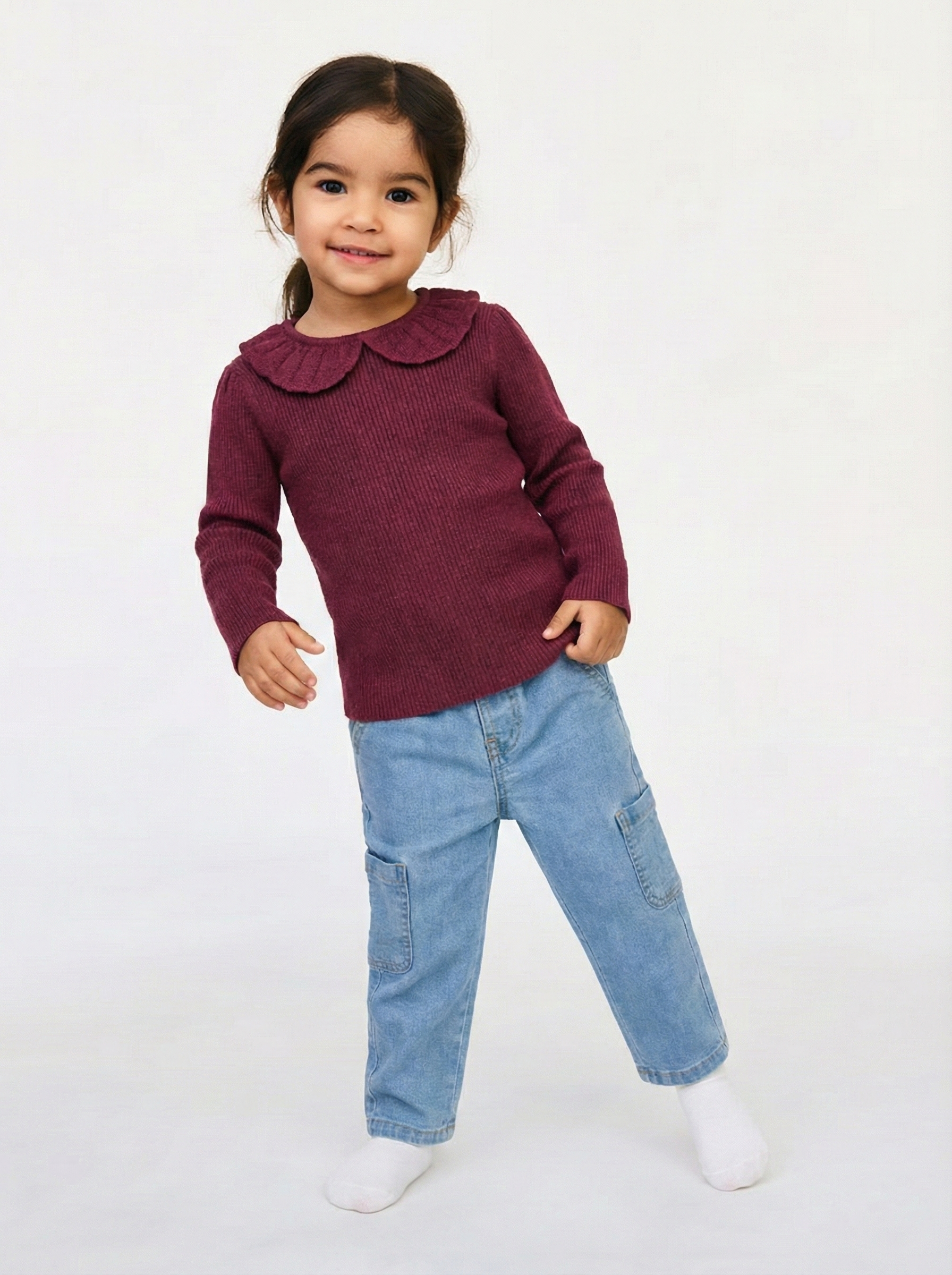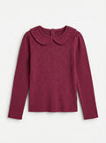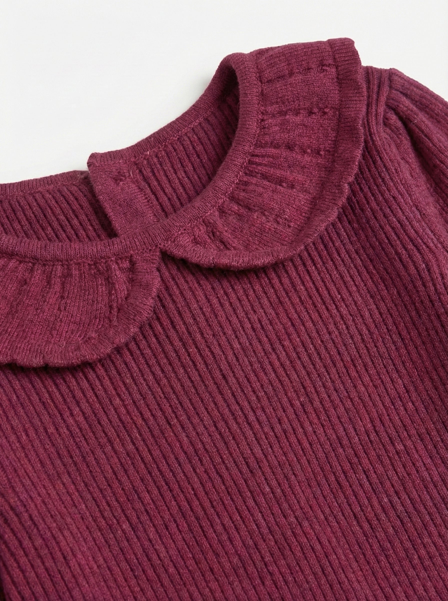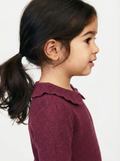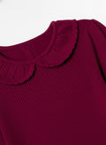 Toddler Girls’ Ribbed Knit Long Sleeve Top with Peter Pan Collar – Maroon