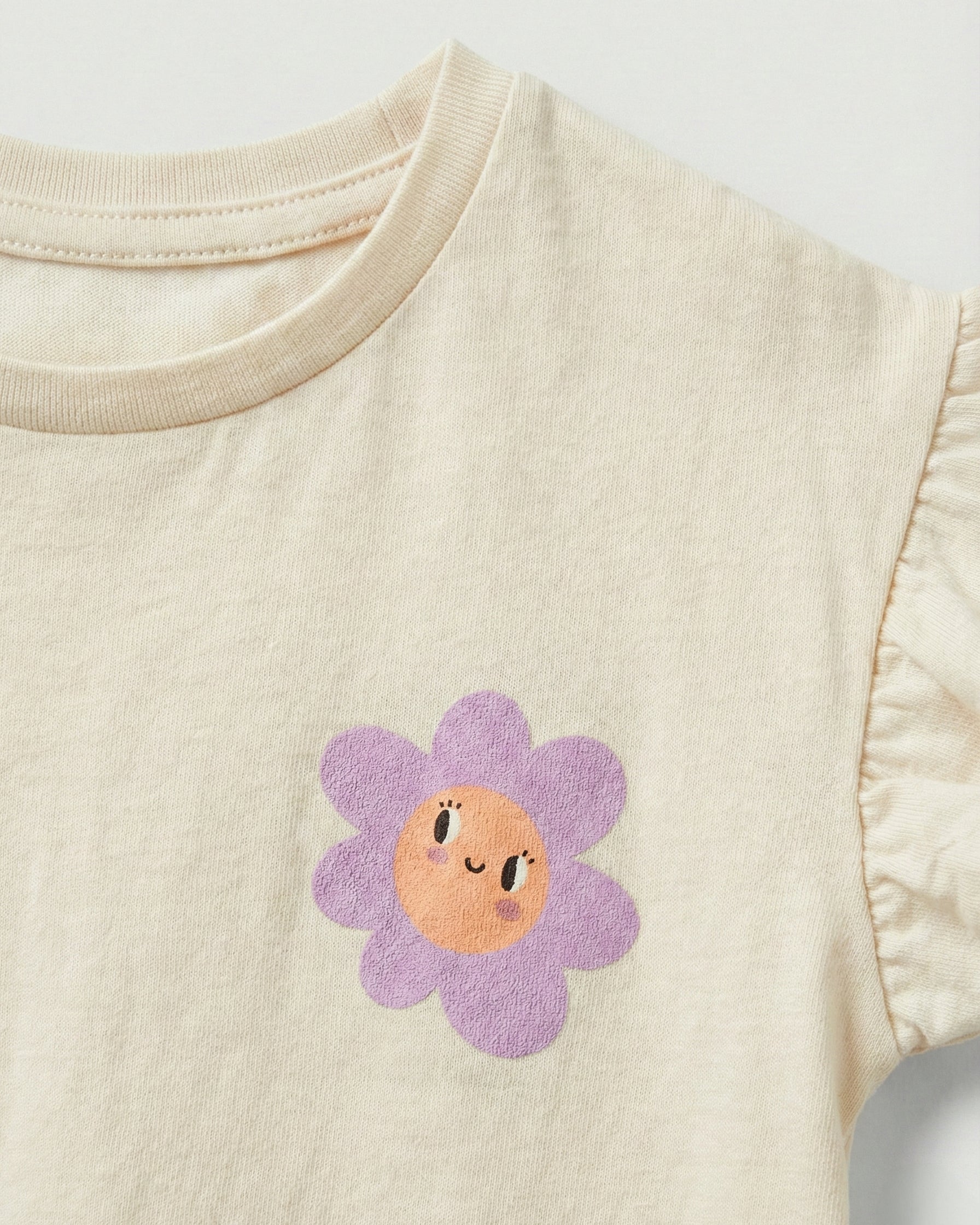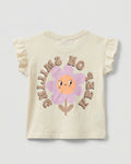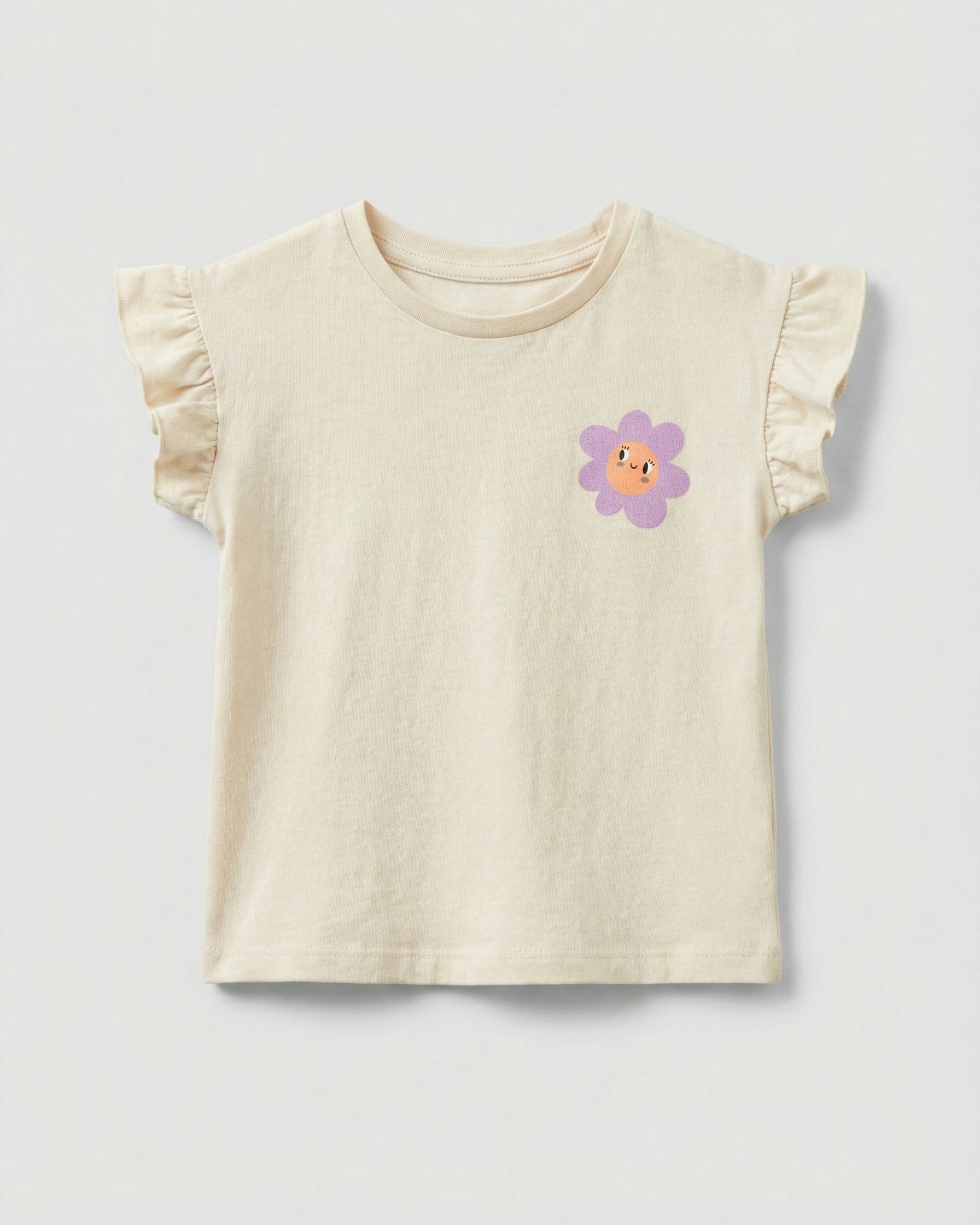 Toddler Girl's Ruffled Sleeve Cotton T-Shirt | Beige
