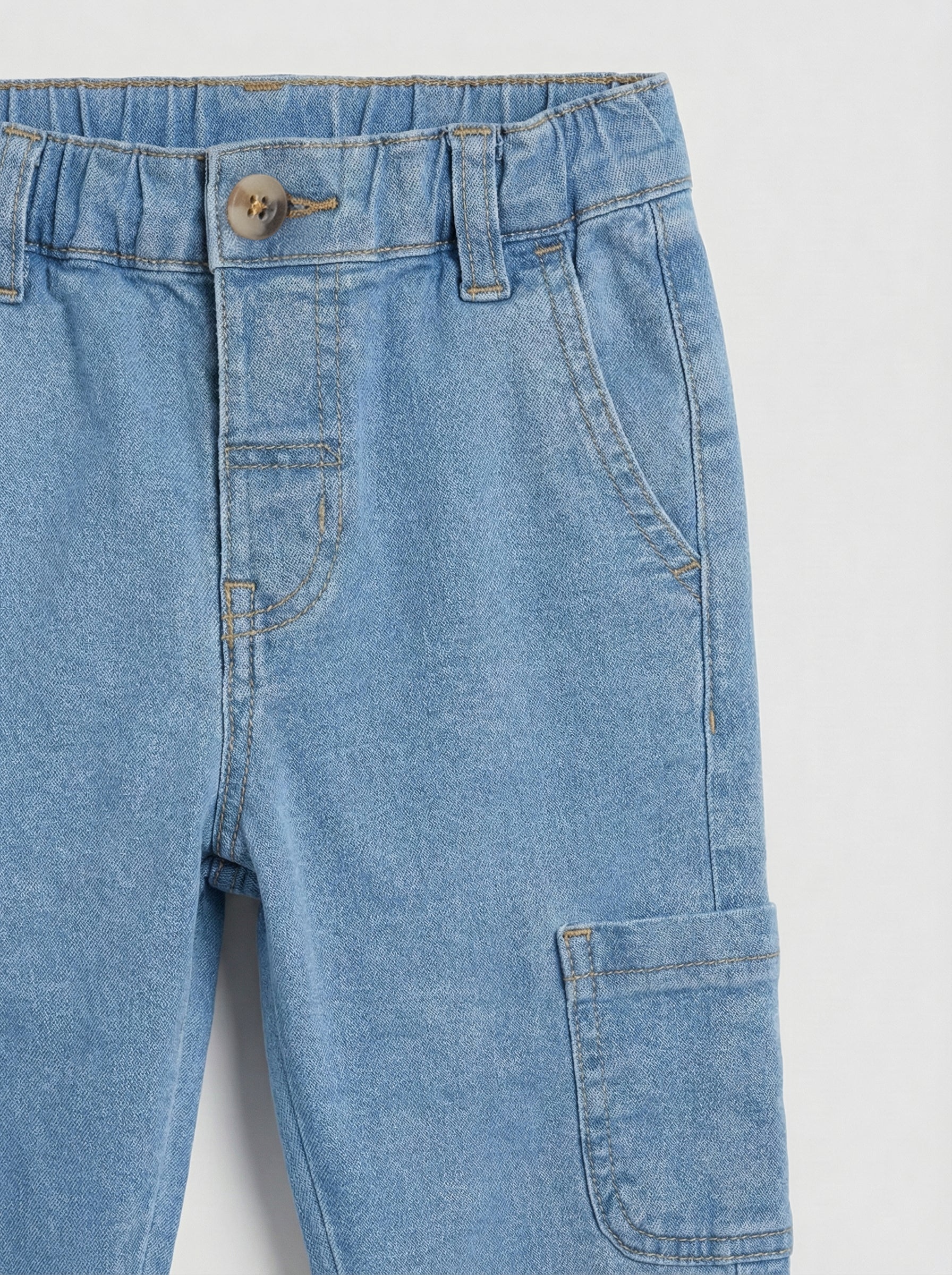 Toddler Straight Cut Cargo Jeans | Light Stone Wash