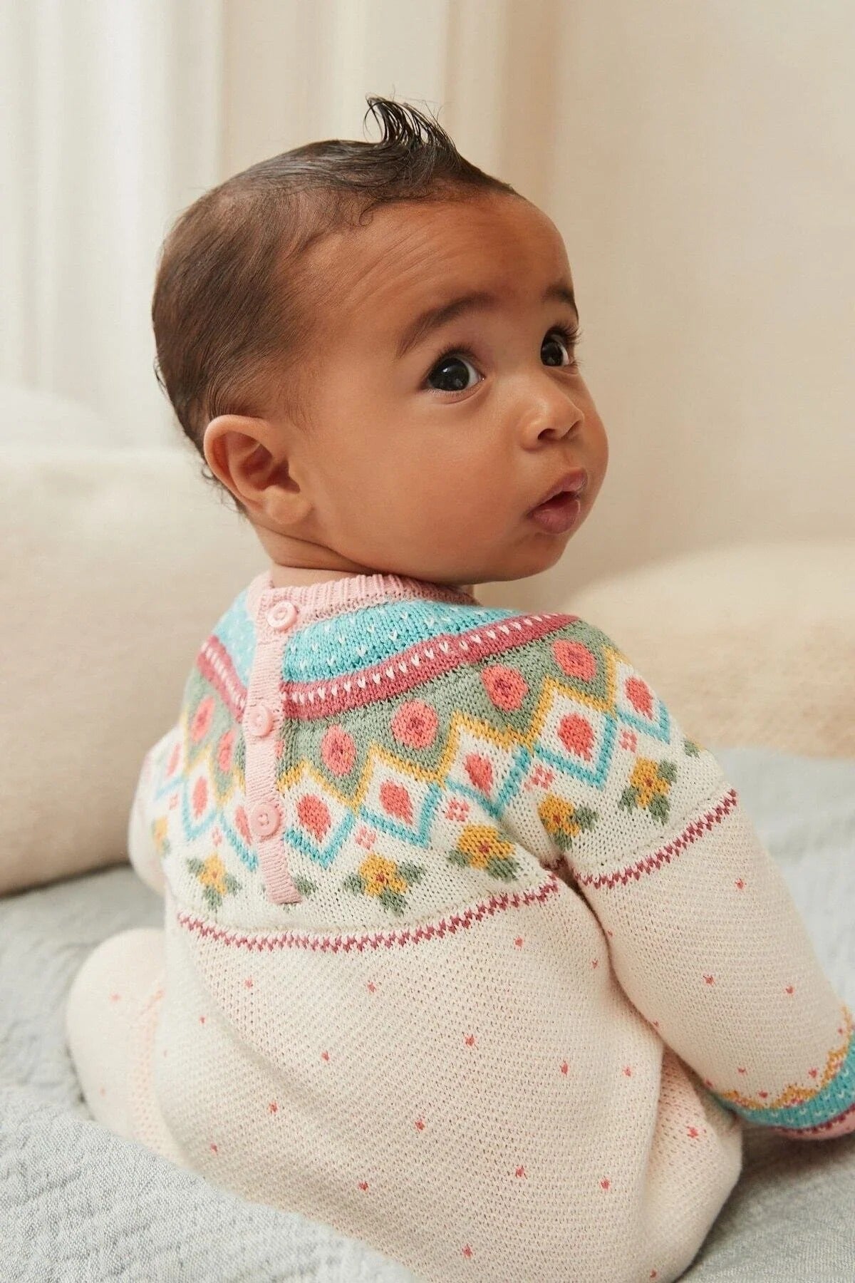 There is something timelessly precious about a classic knit. Our Vintage Fair Isle Romper is designed to keep your baby snug without compromising on style.